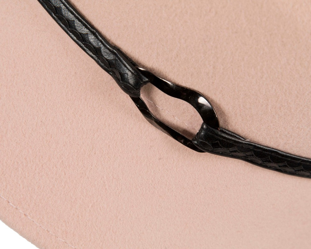 Classic beige trilby hat. Made from pure wool felt, this hat is trimmed in Australia by our experienced milliners. Equally suitable for autumn/winter race meetings or stylish everyday wear.