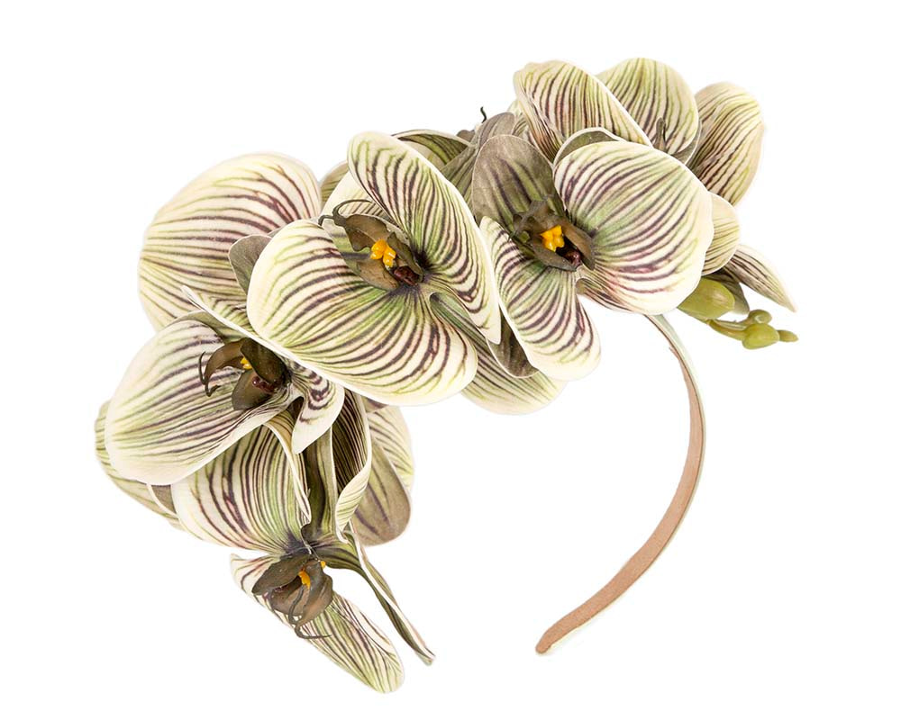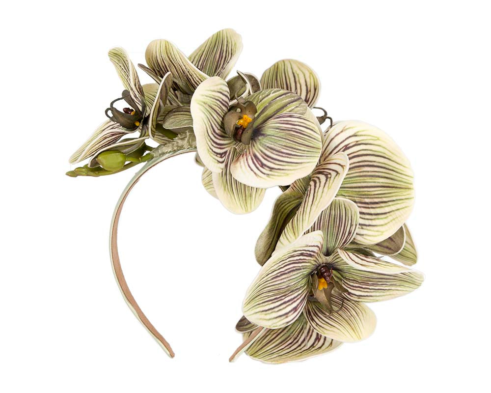 Bespoke pistachio orchid flower headband by Fillies Collection