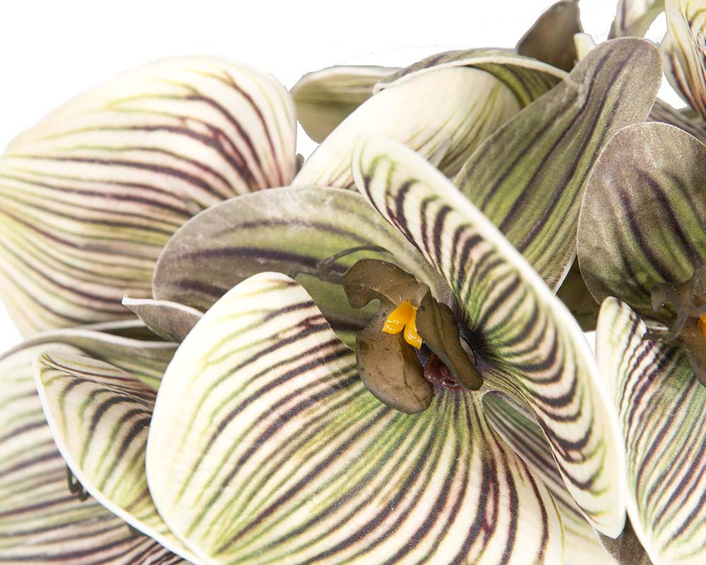 Very realistic looking orchid flowers placed on the headband. Unique material looks and feel like real flower.