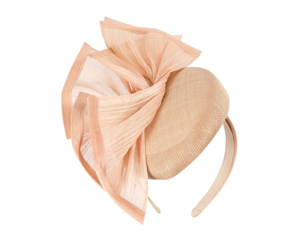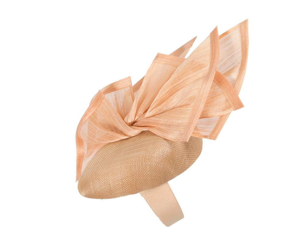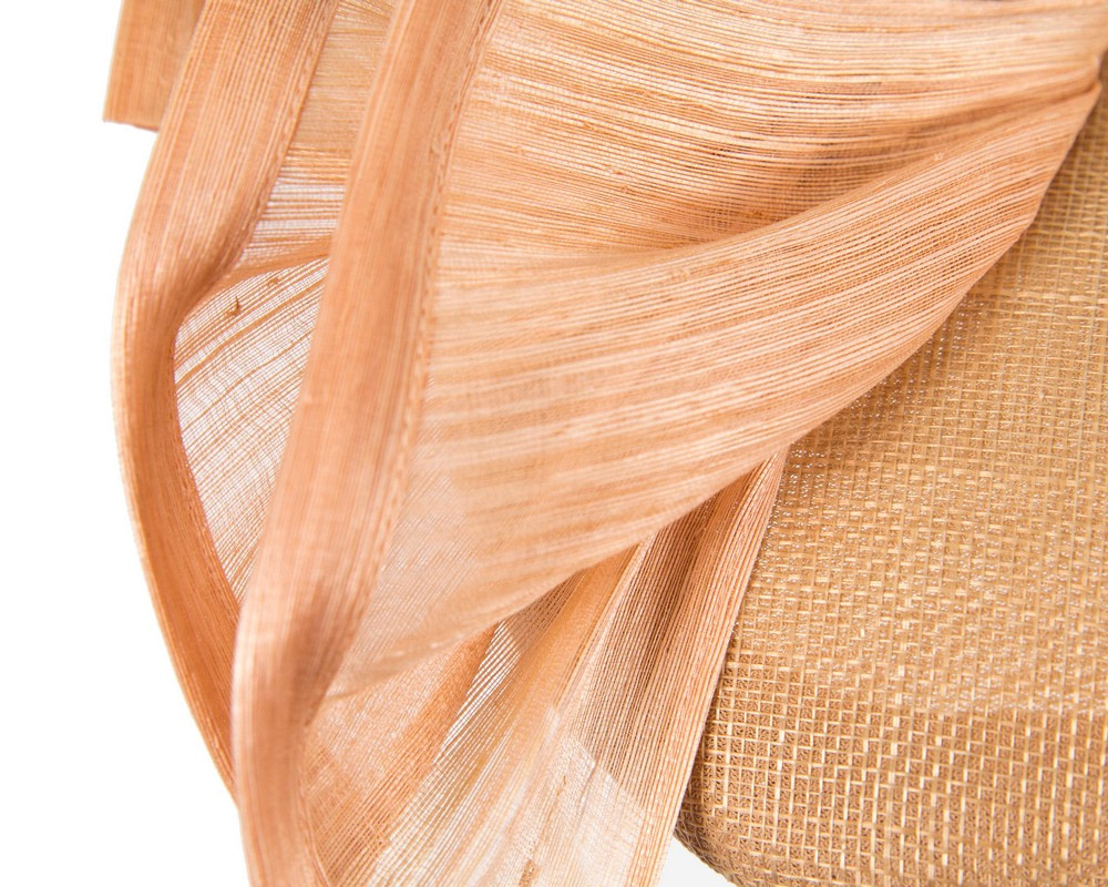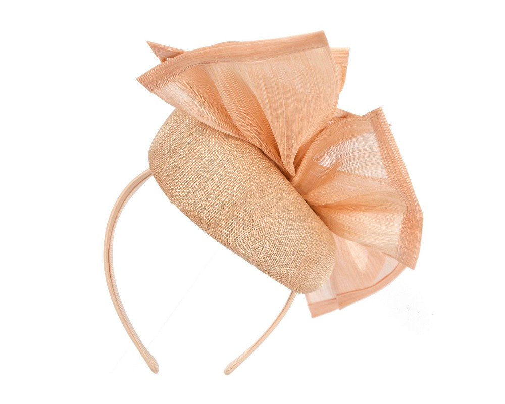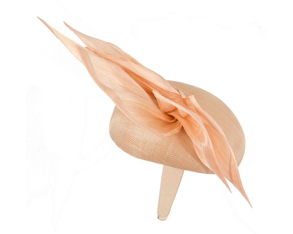 This exclusive fascinator is made right here, in Melbourne, by our experienced milliners. Classic nude pillbox base with hand-crafted silk abaca arrangement. It will be a highlight of your spring racing outfit.