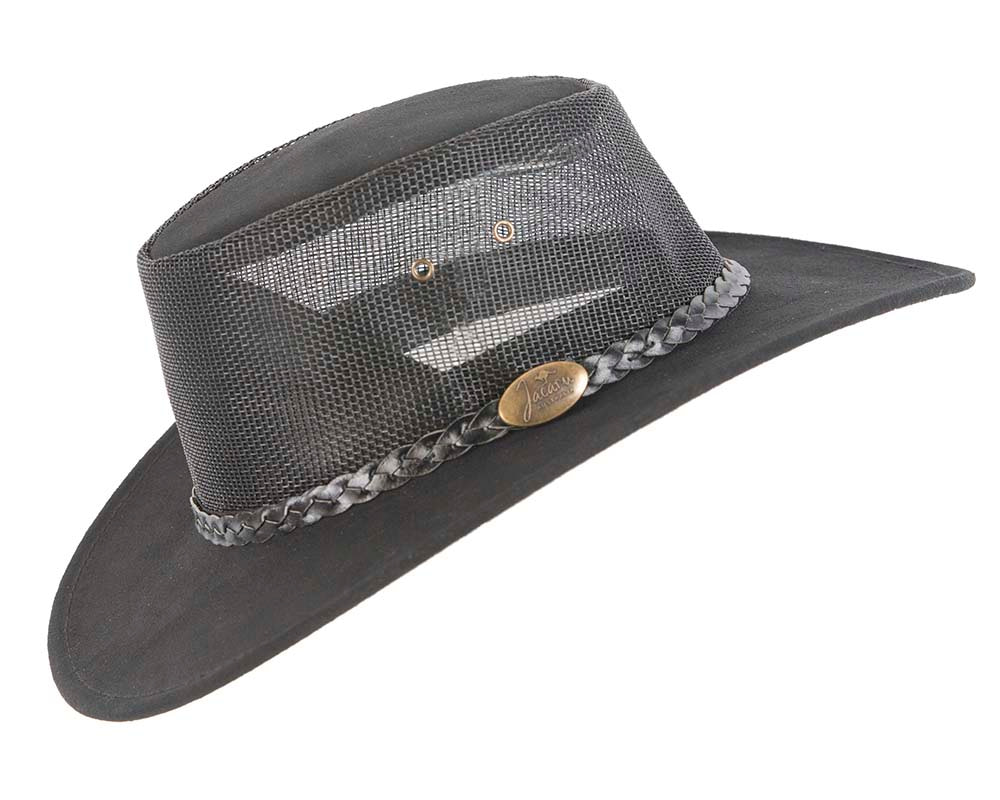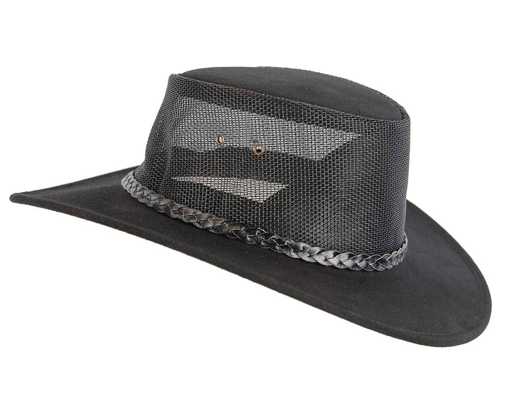 Black Australian Suede Leather Cooler Jacaru Hat - Hats From OZ UK