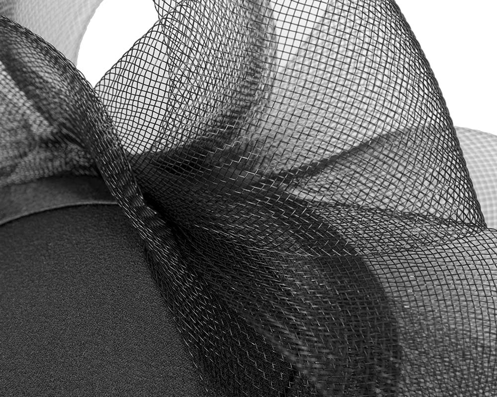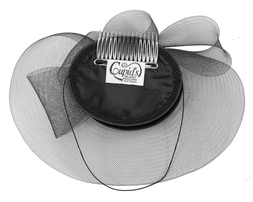This gorgeous black headpiece from our beautiful range of cocktail hats, headpieces and special occasion hats is custom made from luxurious fabric with crinoline brim and with comb for comfortable wearing. This hat is ideal for those special occasions such as weddings, Melbourne Cup and Ascot.