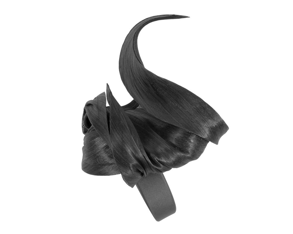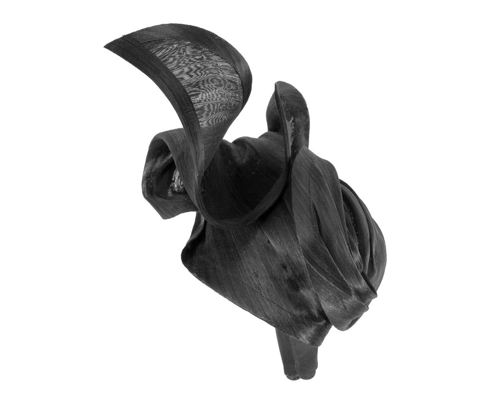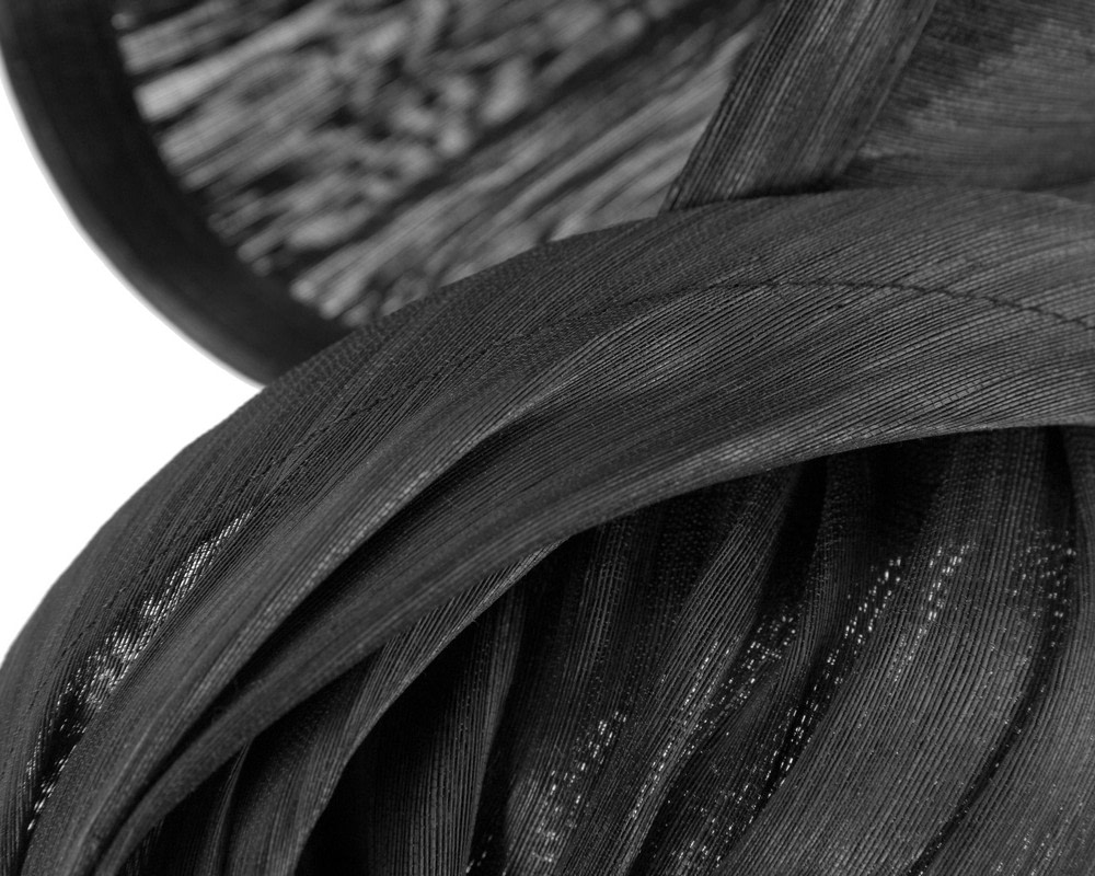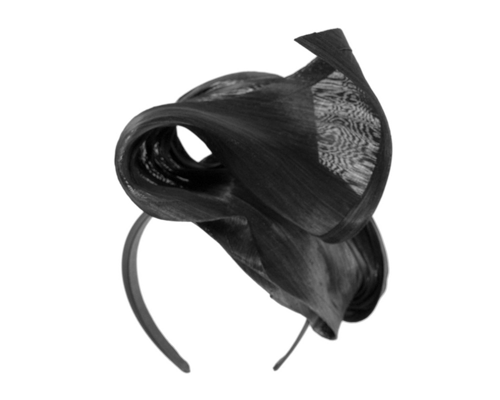 This elegant fashion fascinator hat is an ideal complement for any outfit. Wear it at Melbourne Cup, Ascot, Kentucky Derby or any other special occasion and it is guaranteed to turn heads! Hand made in Melbourne from twists of luxurious black silk abaca fabric, this fascinator hat is mounted on the band for better fit.