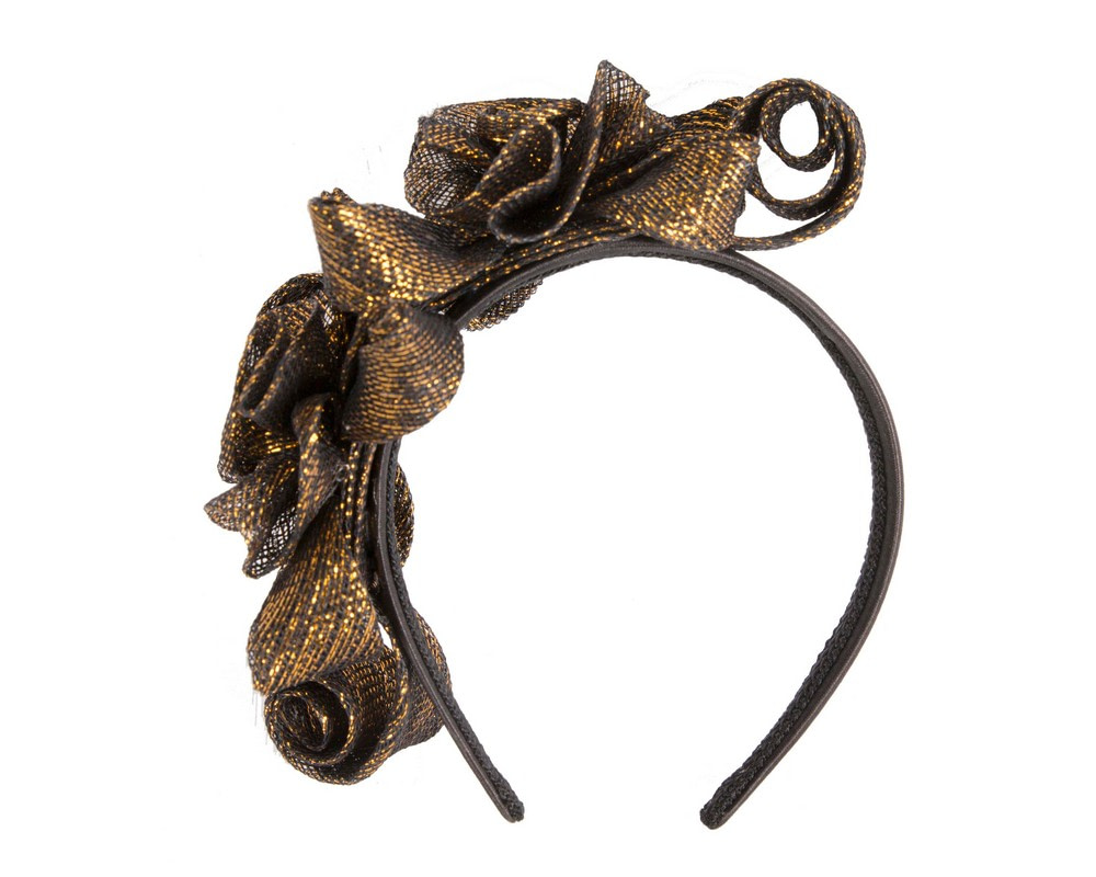 Black & gold curly sinamay fascinator by Max Alexander