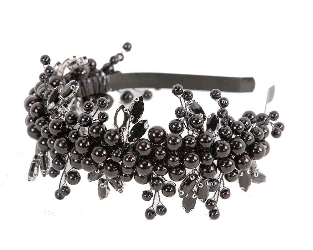 Black pearl & crystals fascinator headband by Cupids Millinery