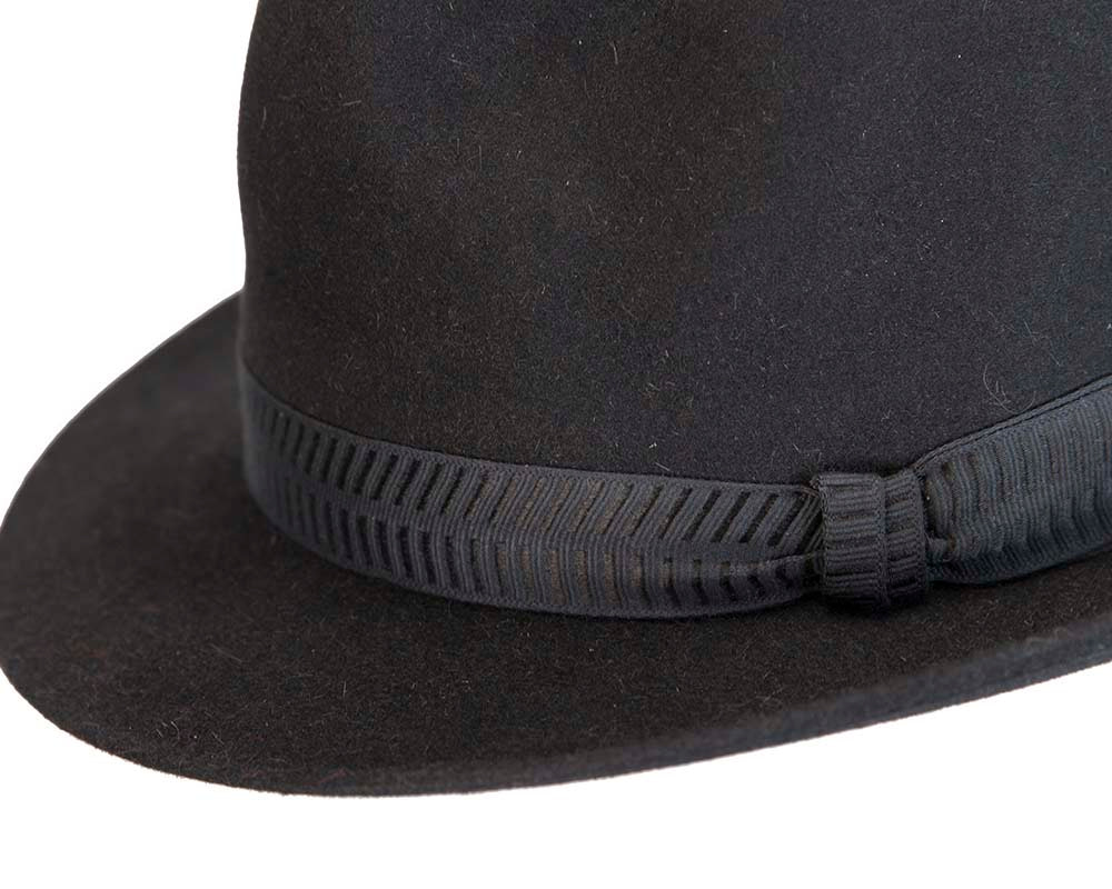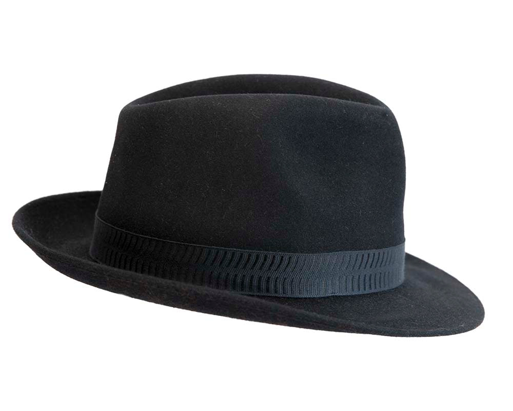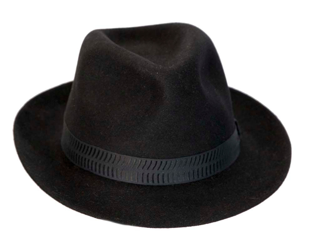 Black rabbit fur mens wide brim fedora hat