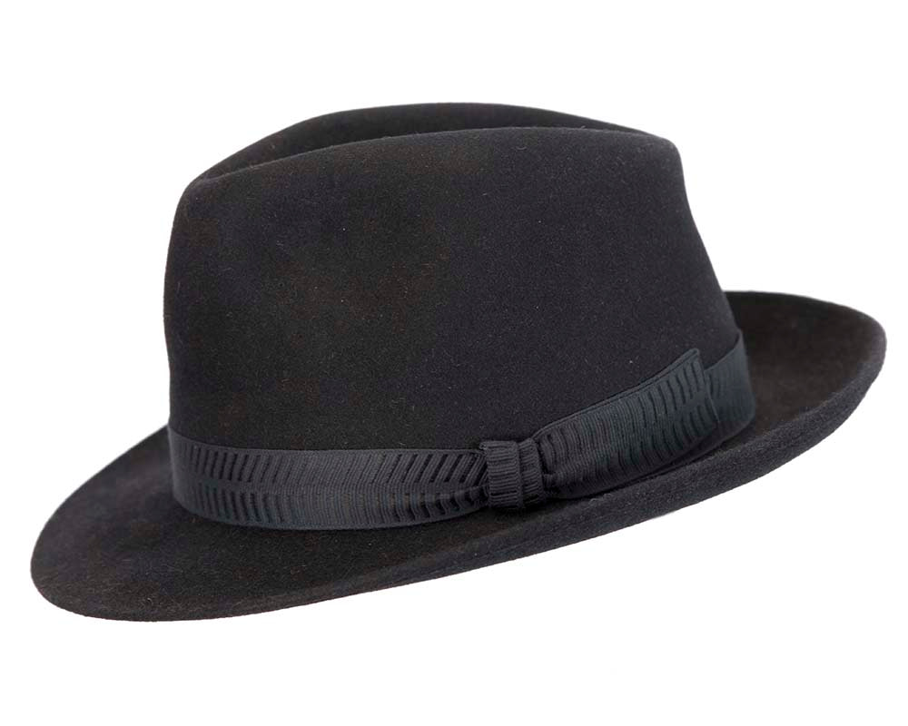 Made in Europe, this black fedora hat is made from pure rabbit fur.