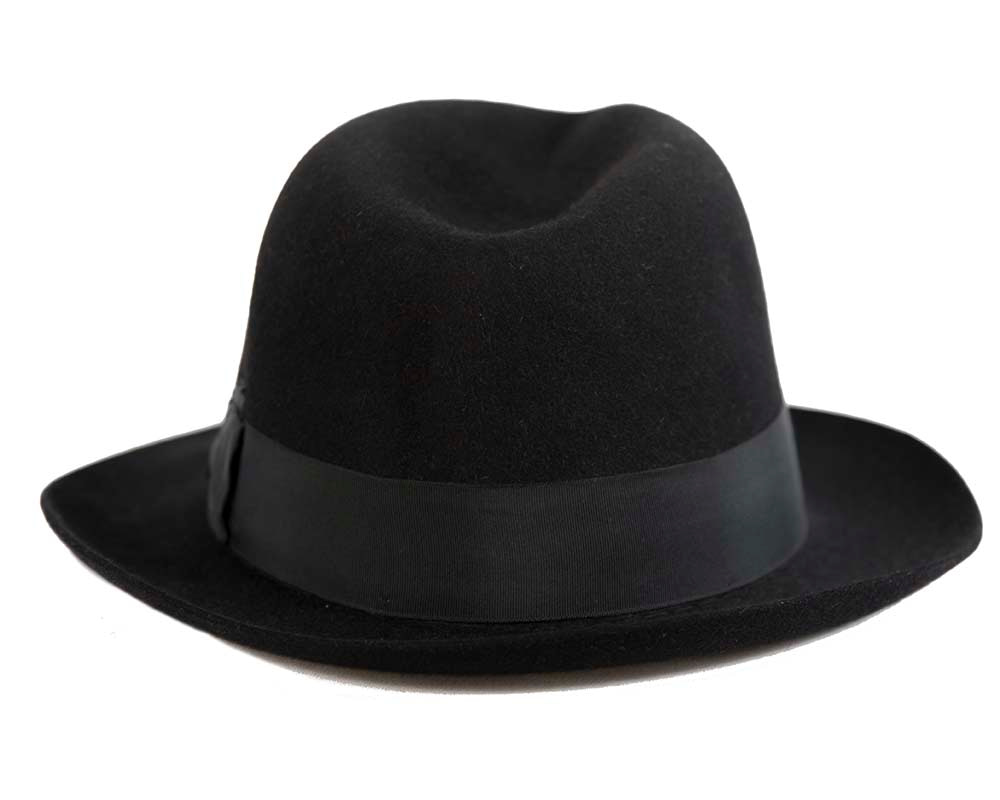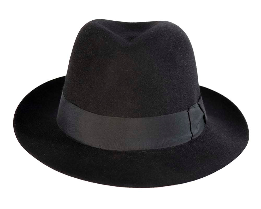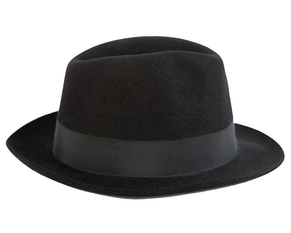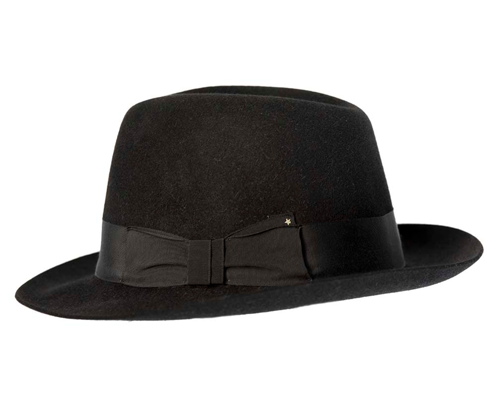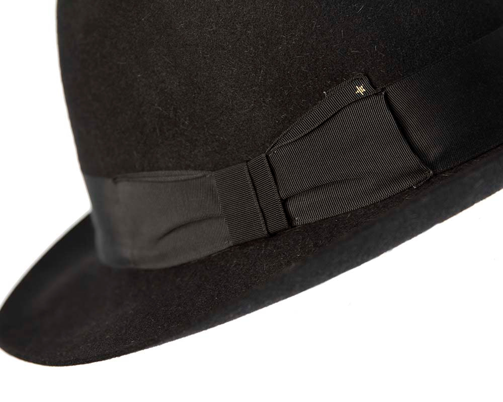 Made in Europe, this black fedora hat is made from pure rabbit fur.