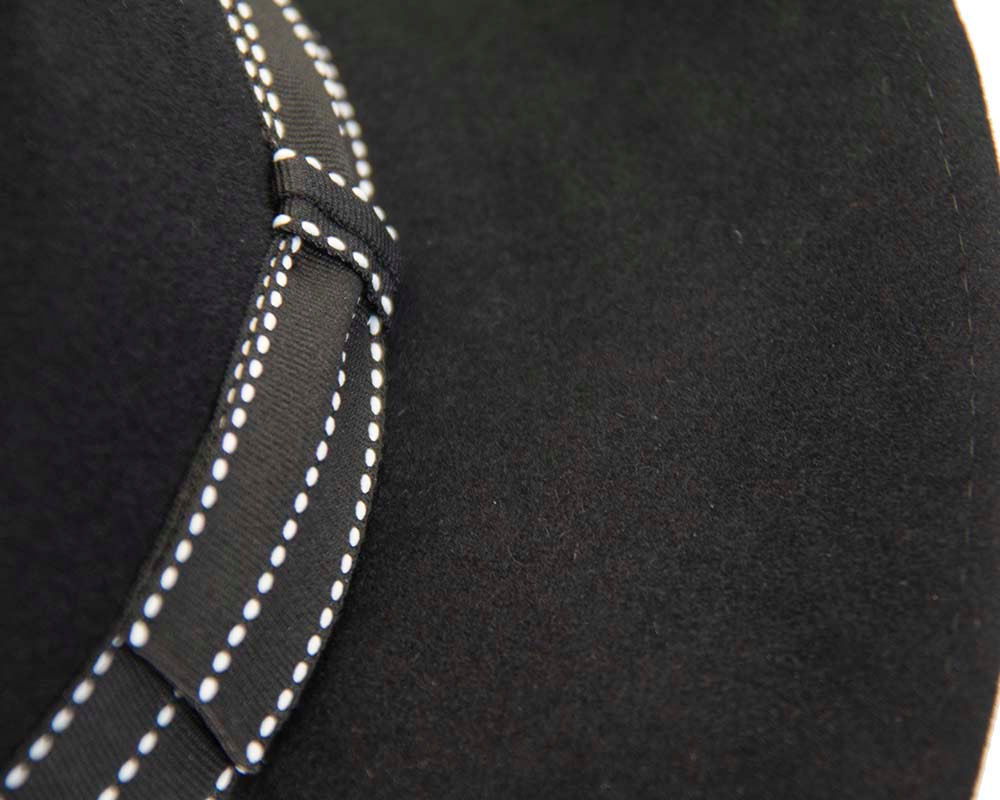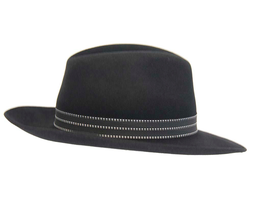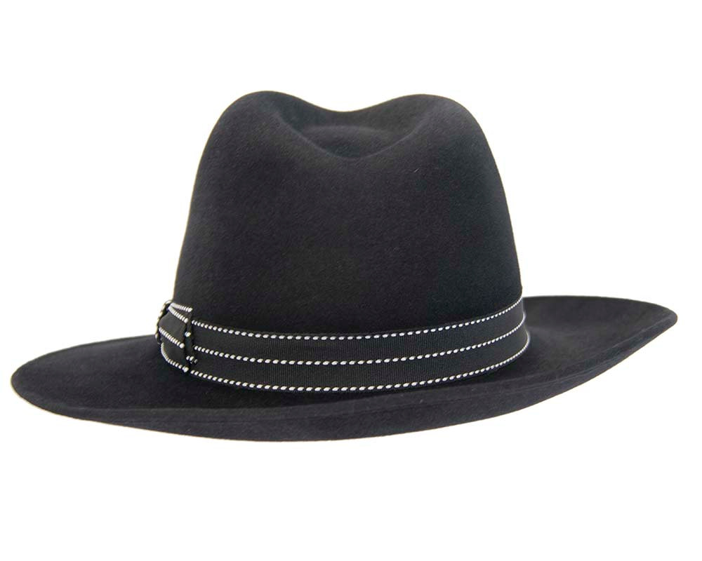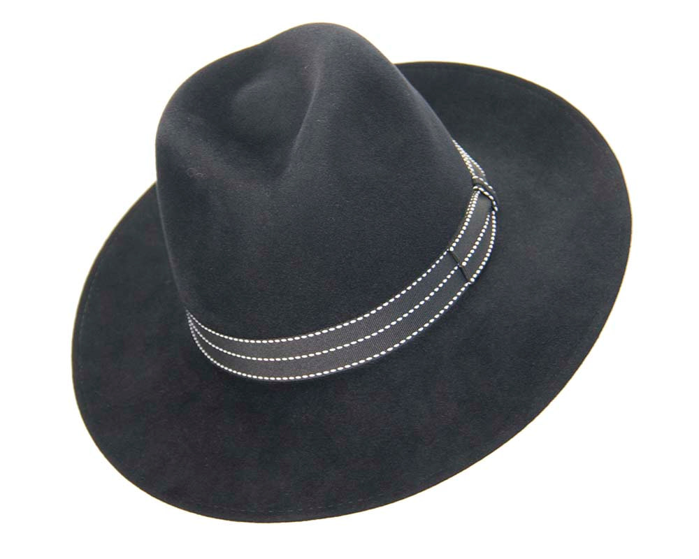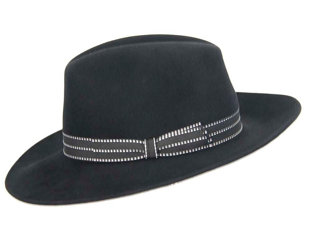 Black wide brim rabbit fur fedora hat