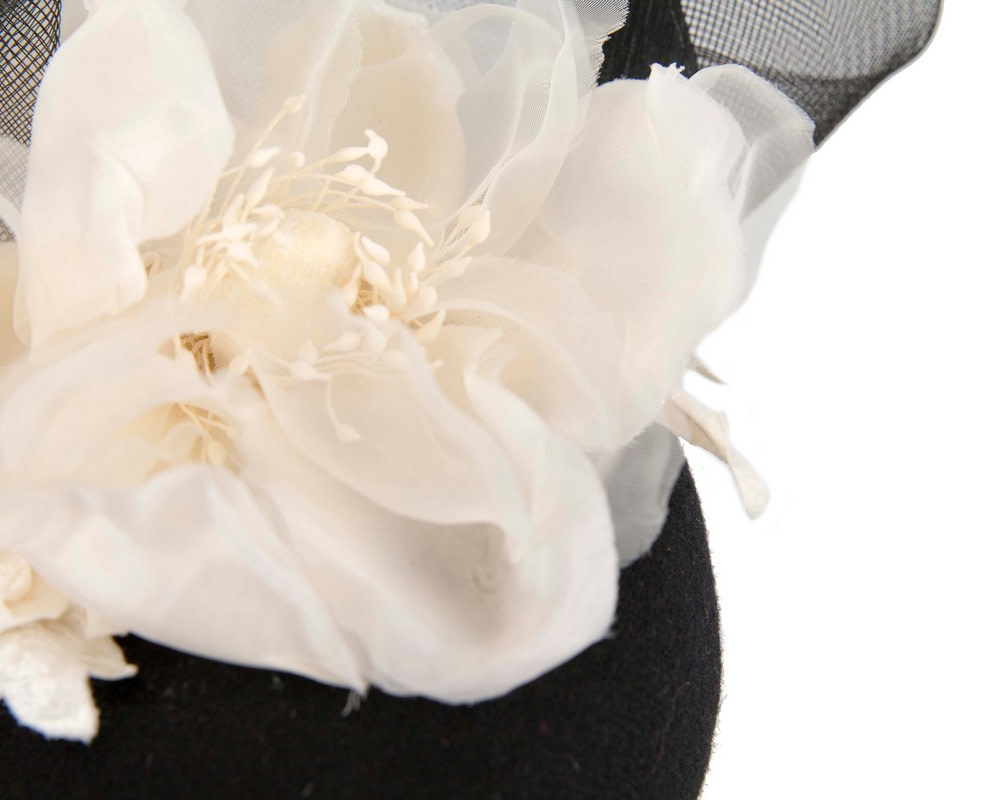Black winter pillbox fascinator with cream flower - Hats From OZ UK