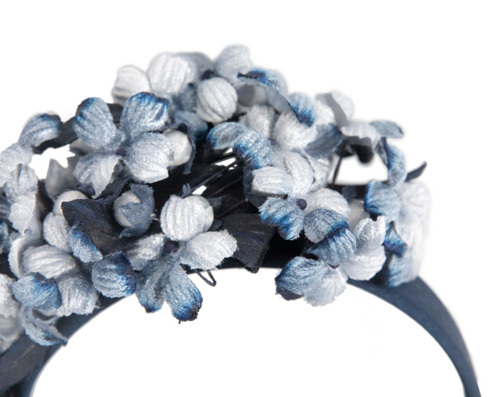 This charming blue floral headband is a delightful accessory that adds a touch of whimsy and elegance to any ensemble. Featuring a cluster of delicate fabric forget-me-not flowers in varying shades of blue, this headband exudes a soft, romantic appeal. Each flower is meticulously crafted, with attention to detail that highlights their natural beauty. The comfortable headband is wrapped in matching pink fabric, ensuring a secure and gentle fit for all-day wear. Perfect for racing carnivals, garden parties or any special occasion, this floral headband is a beautiful finishing touch to your look.