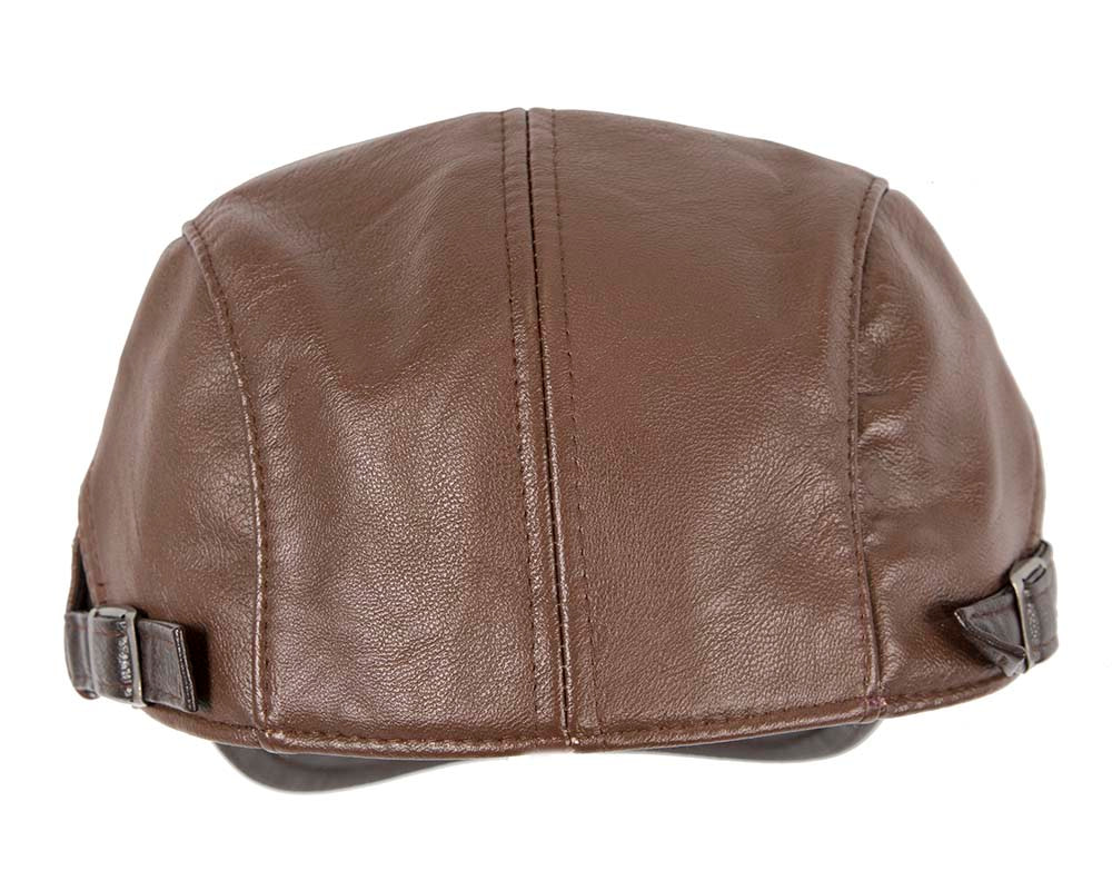 Classic shape flat cap with beak by Max Alexander. This flat cap can be adjusted to fit almost any size. Made from strong faux leather.