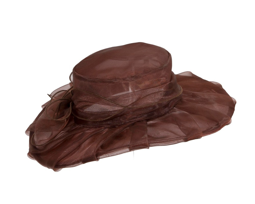 Stylish and elegant this chocolate brown organza hat is a natural companion to your racing outfit.
