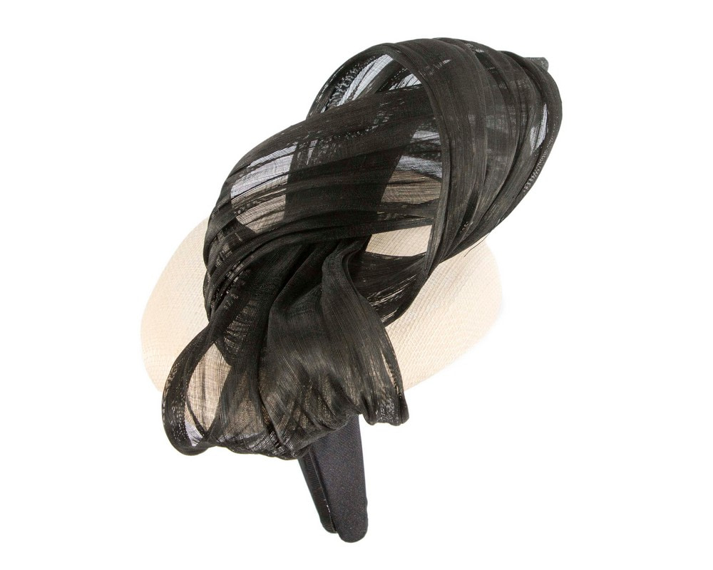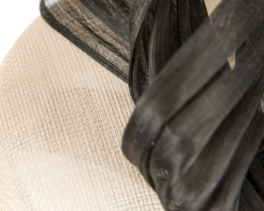 Cream & Black pillbox fascinator with silk abaca bow by Fillies Collection