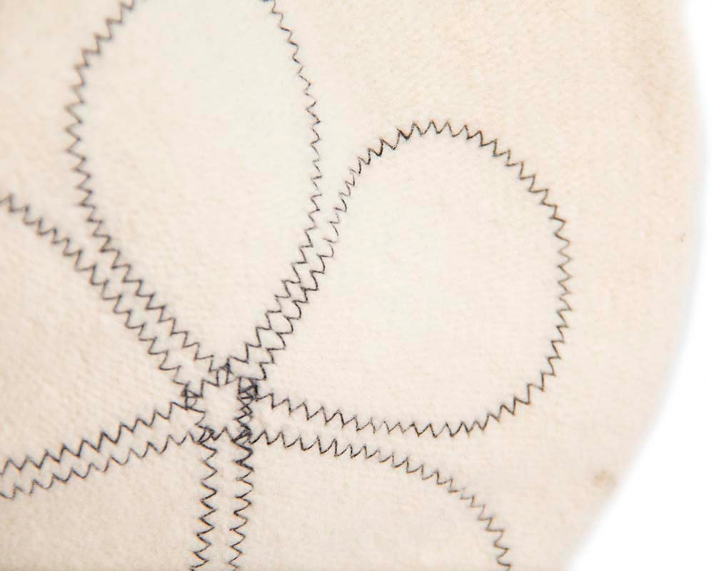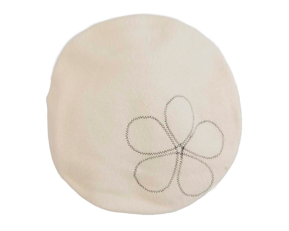 Soft and comfortable, this cream beret features classic round shape with embroidered black flower and black base