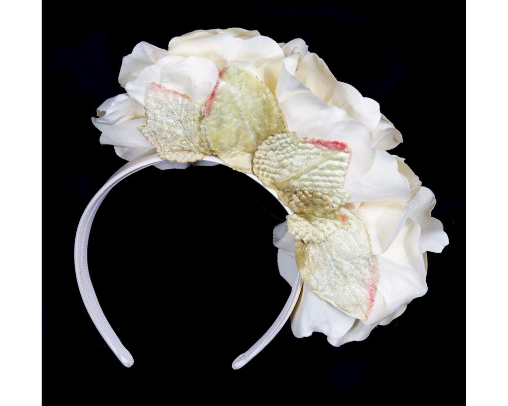 Large cream flower headband. This fascinator will be a great addition to your next spring racing outfit.