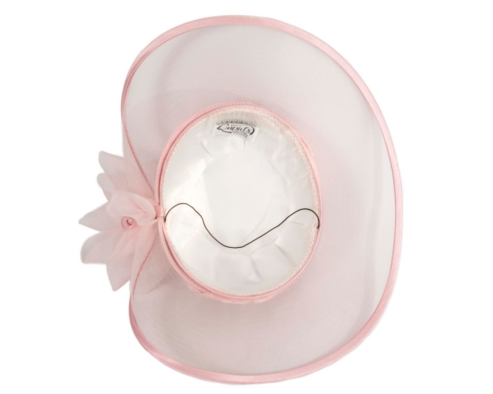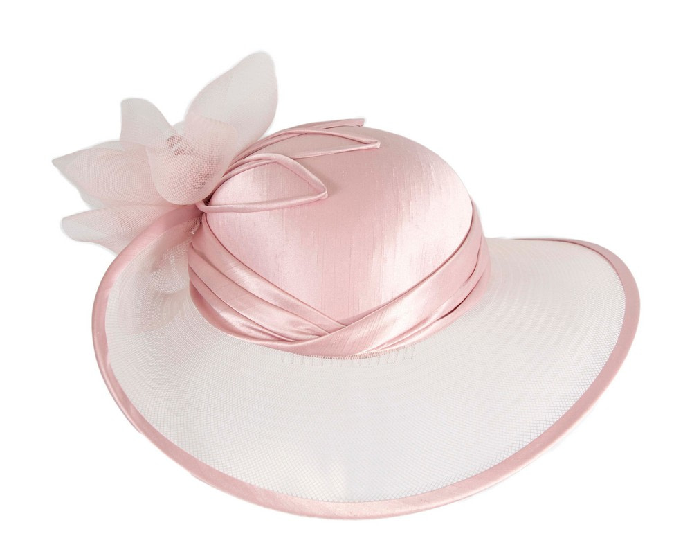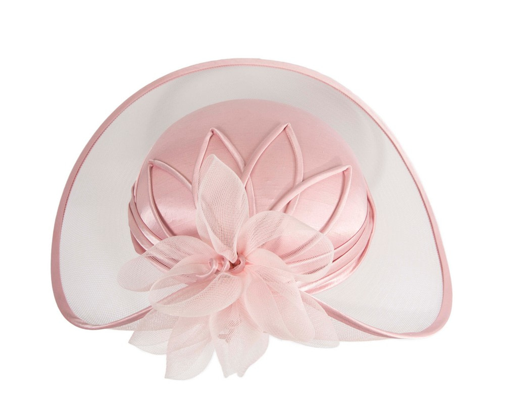 This stunning pink hat from our beautiful range of mother of the bride, evening, church and special occasion hats is hand made from combination of dull and shiny sides of luxurious fabric, fully lined and has comb for comfortable wearing. This designer fashion hat is made to order and we can make it in many colours.