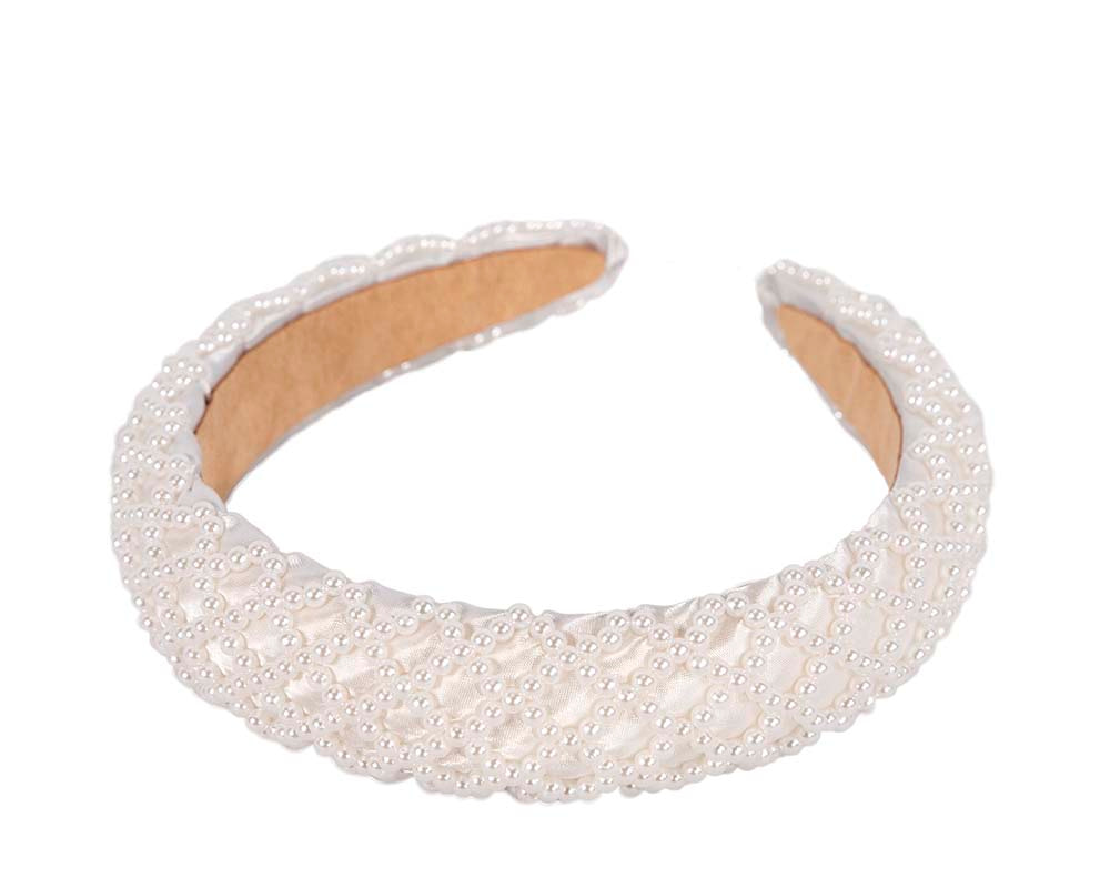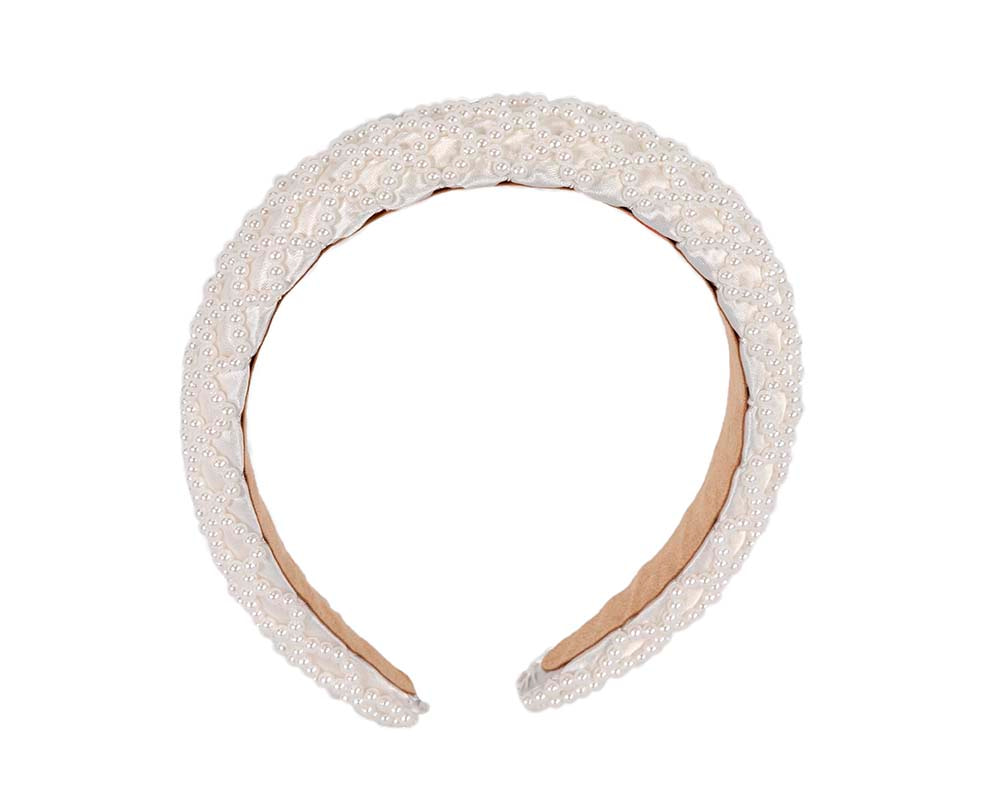 Cream headband fascinator covered in pearls. Perfect racing accessory.