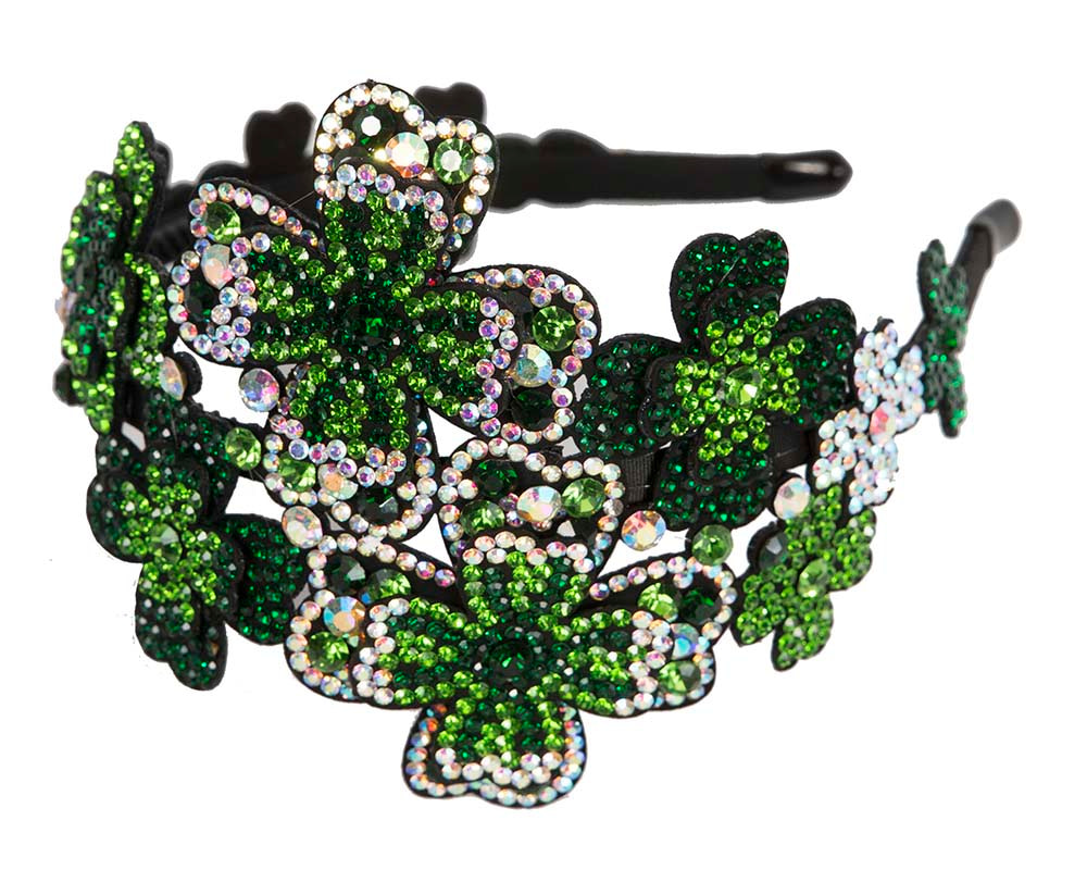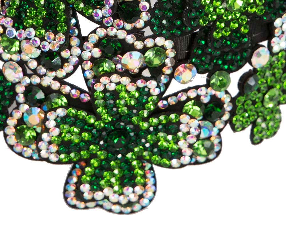 Stylish headband fascinator covered in green crystals. Perfect racing accessory.
