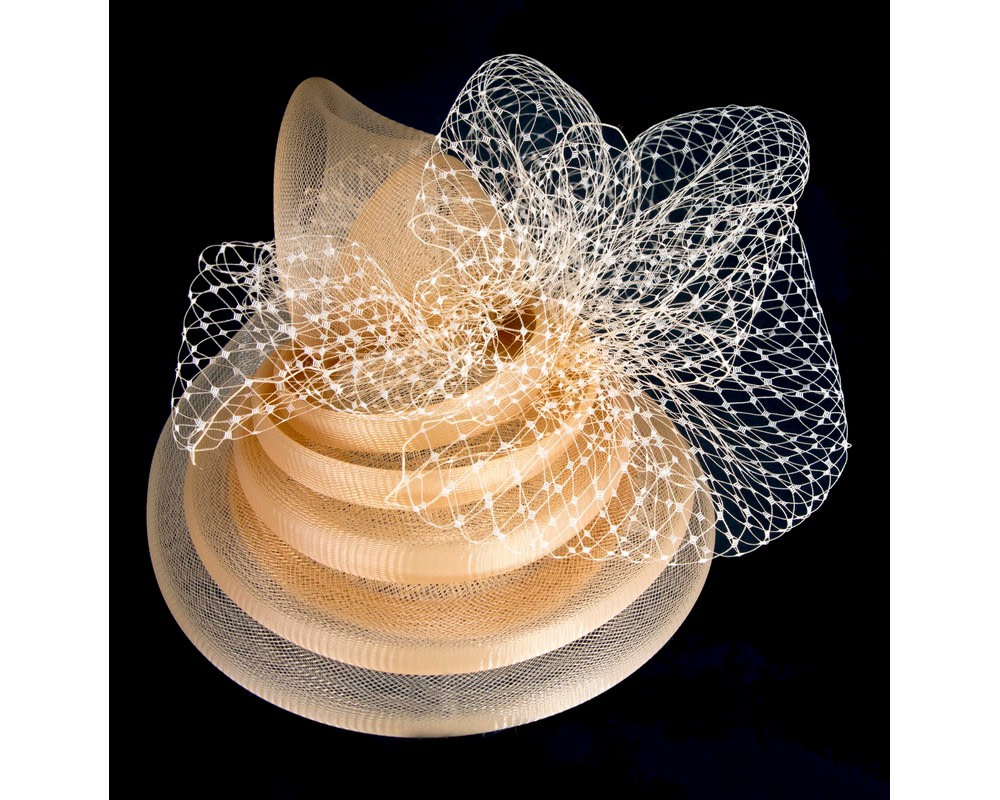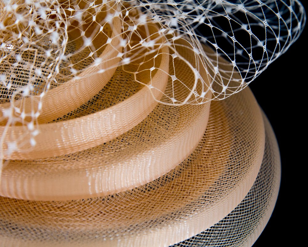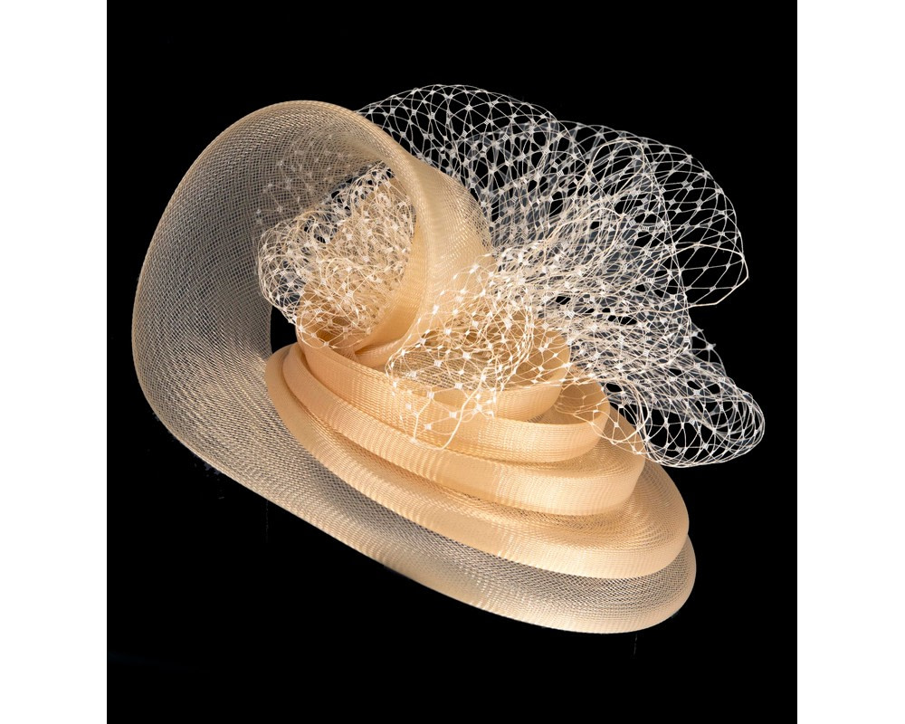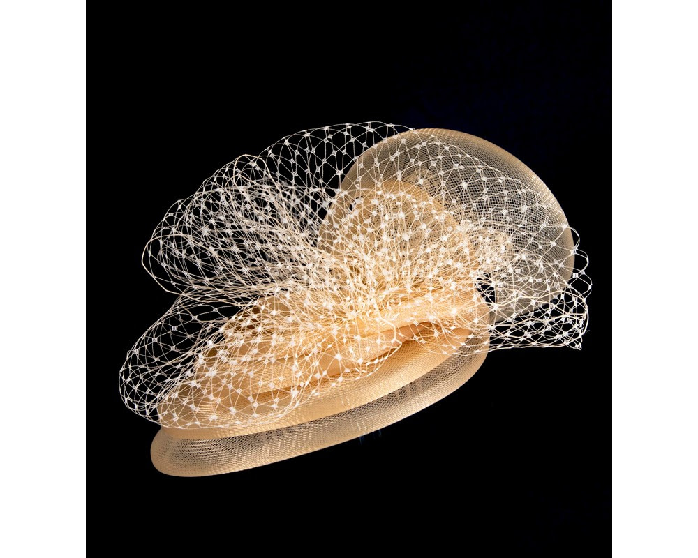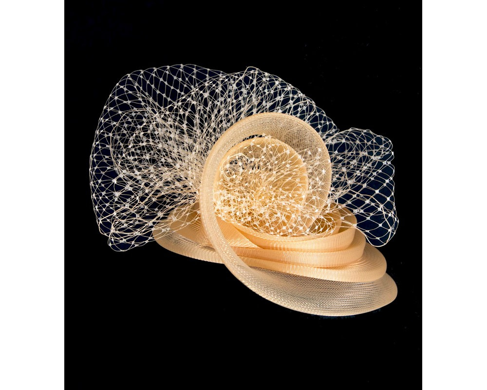 This fancy headpiece from our beautiful range of cocktail hats, headpieces and special occasion hats is custom made from luxurious fabric with synthetic horse hair (crinoline) with comb for comfortable wearing.