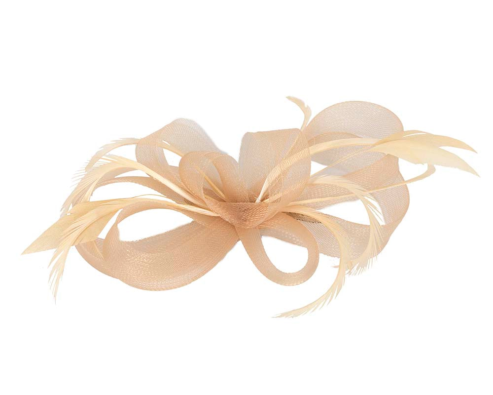 Elegant design featuring loops with feathers. This stunning gold headpiece is hand made to order by us in Melbourne and we can make it in any colour, making it a perfect choice as a bridal headpiece or flower girl fascinator. If you do not find the required colour in our colour chart, you can send us a small piece of fabric and we will match it for you. Leave us a comment with your order about color if custom design is required.