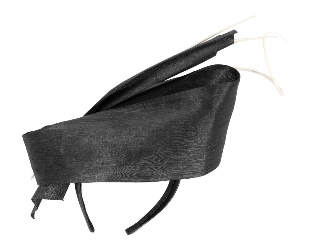 This edgy black fascinator is a latest creation by famous Fillies Collection brand. Made in the heart of Melbourne, it features elegant shape with long contrast feathers. Perfect addition to your next racing outfit.