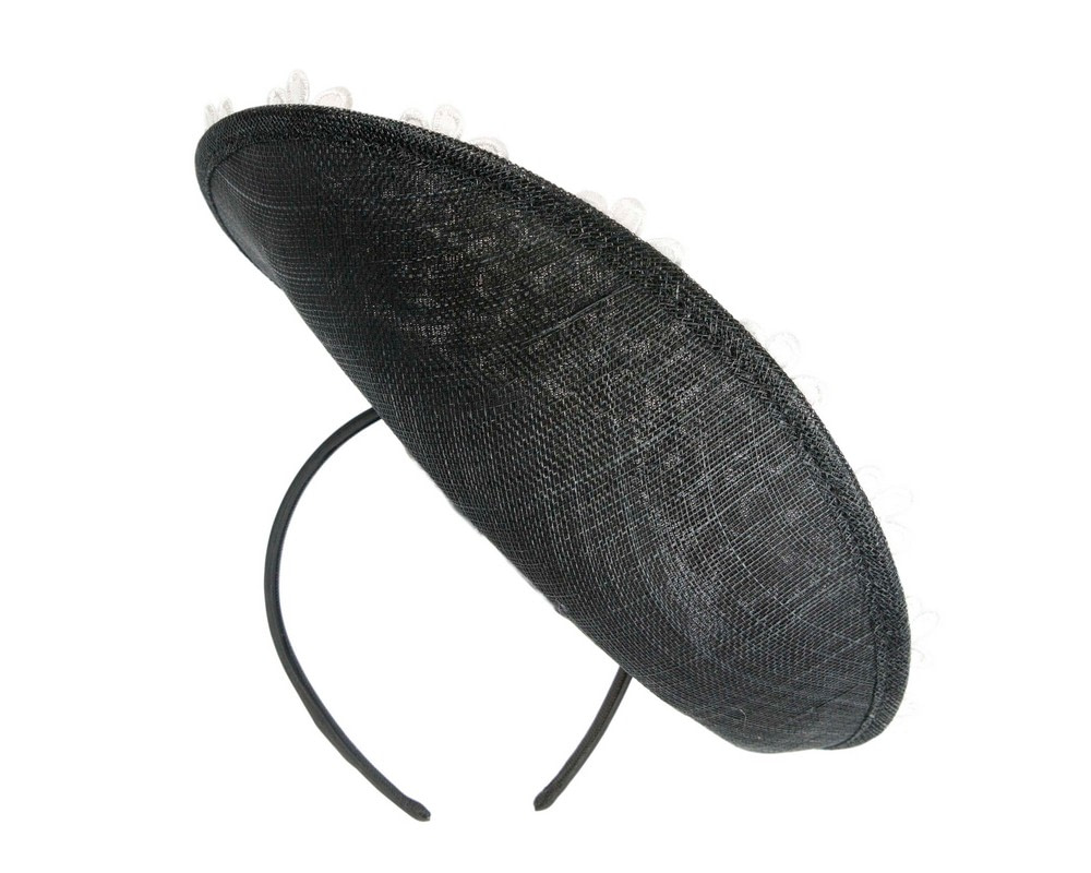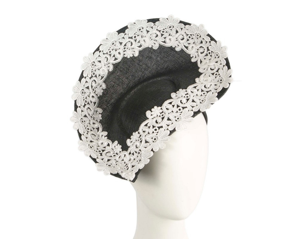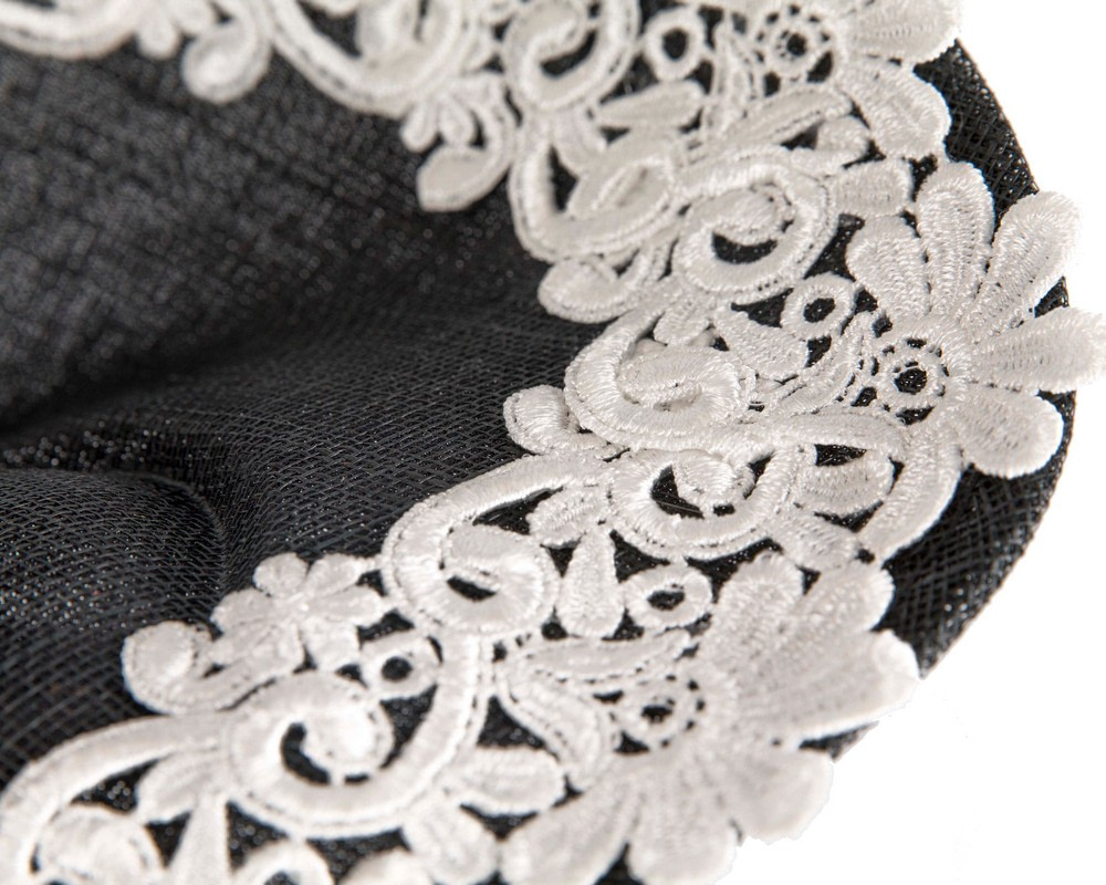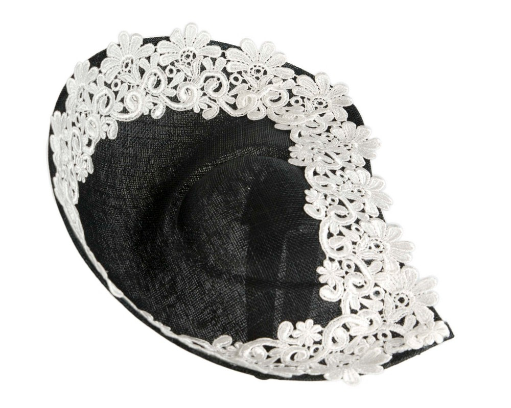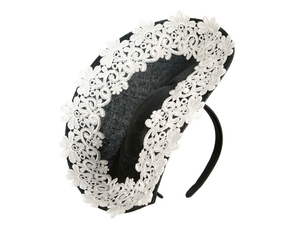 Embroidered Black & Cream Fascinator by Fillies Collection