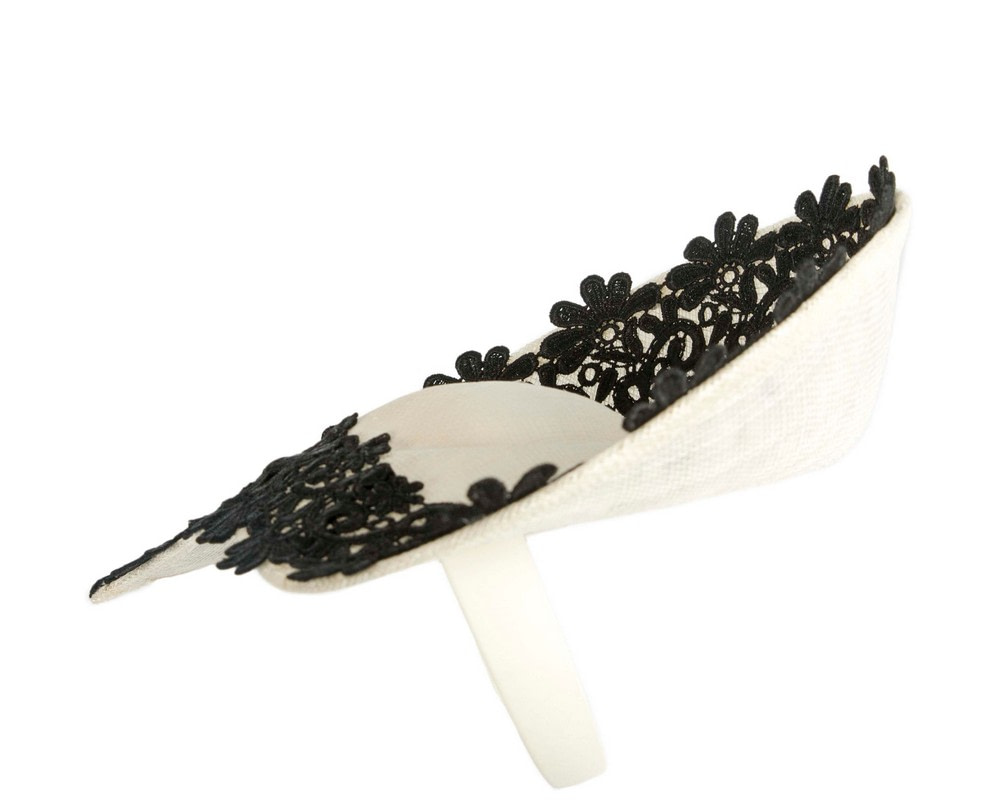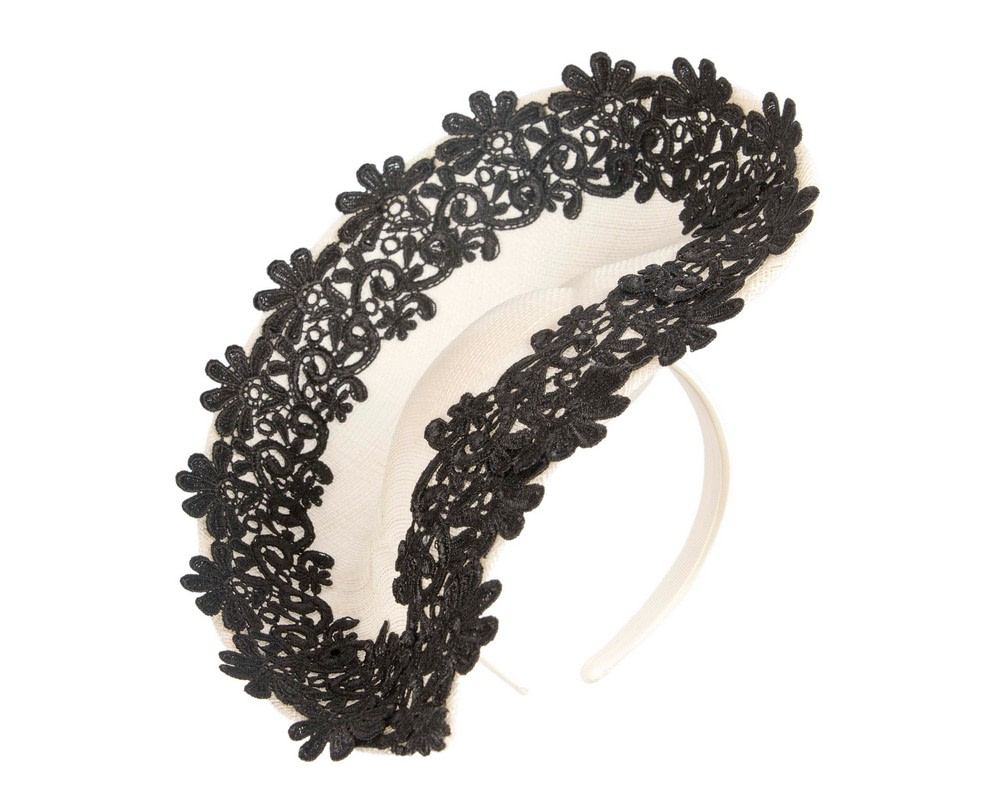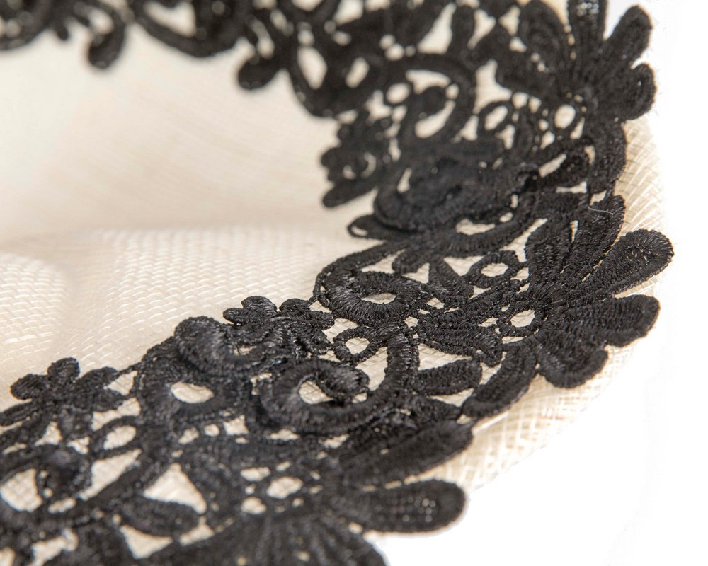 Embroidered Cream & Black Fascinator by Fillies Collection