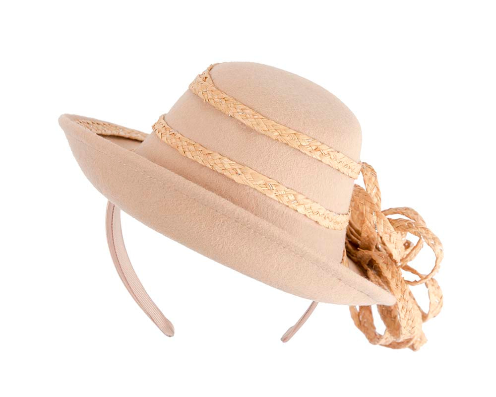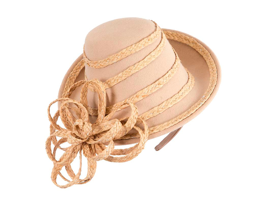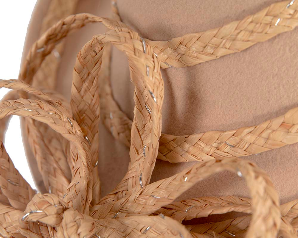 Exclusive beige felt base decorated with straw braid.
