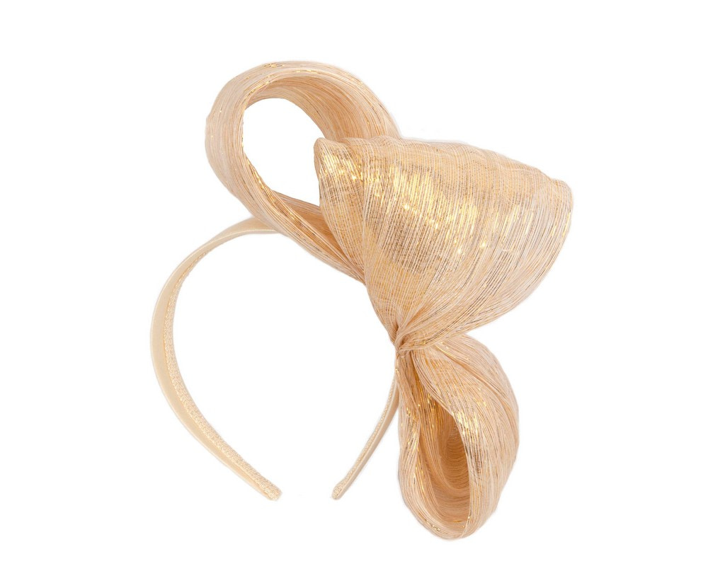 Exclusive gold silk abaca bow by Fillies Collection. Hand made in Melbourne by our world-class milliners, this stylish bow will be a perfect addition to your Melbourne Cup racing outfit.