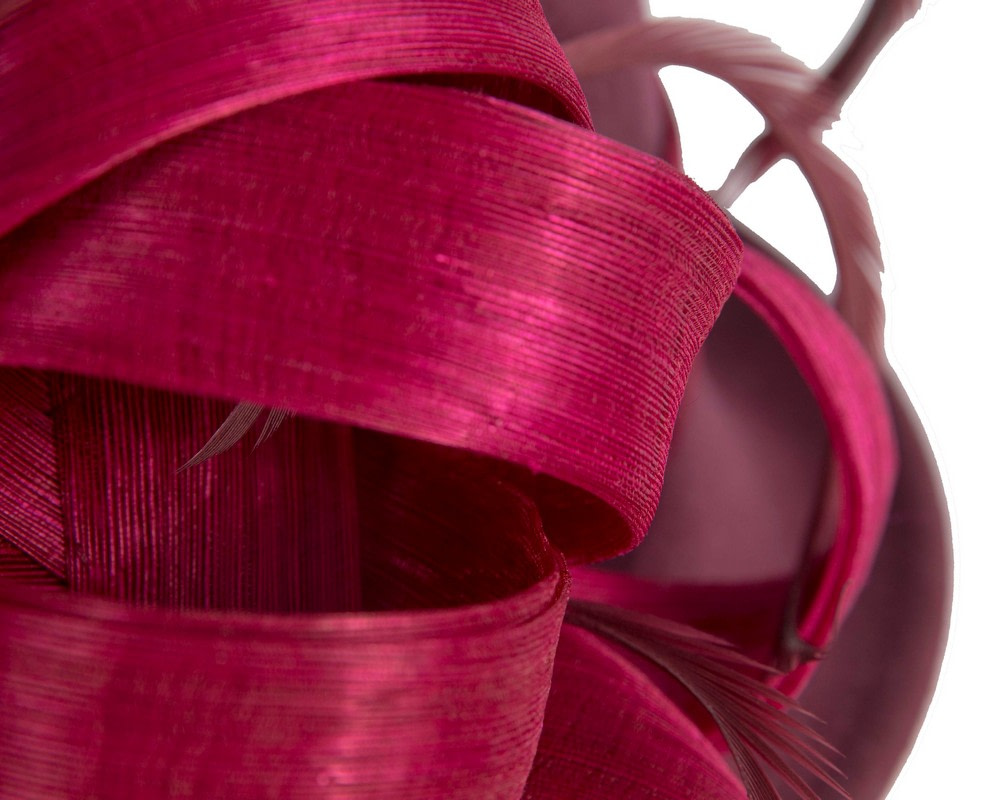 Exclusive wine colored felt winter fashion hat from latest Fillies Collection. Elegant shape decorated with silk abaca loops and feathers. Perfect for everyday wear or winter race events.
