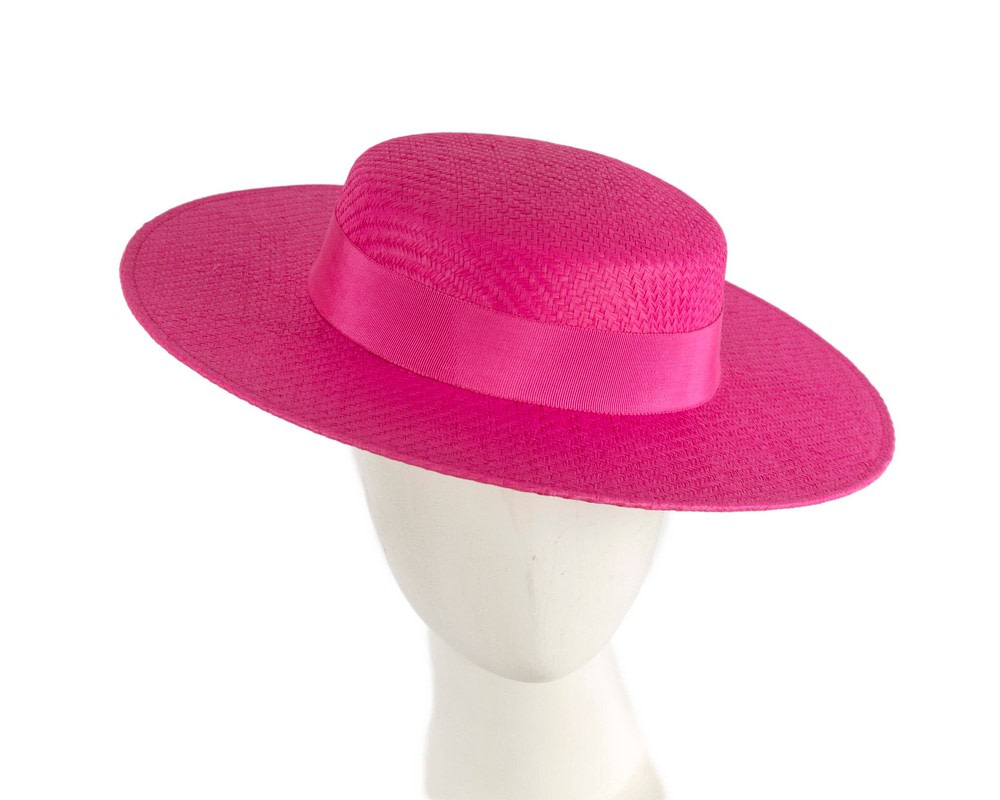 Latest in fashion — fuchsia boater hat from latest Max Alexander collection. Trimmed with wide matching ribbon and elegant bow at the back, this light and elegant boater hat will be a perfect accessory to wear at race day.