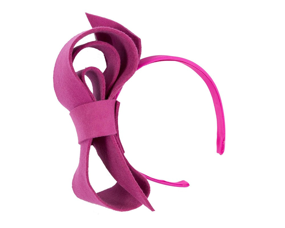 Layers of fuchsia felt arranged into an elegant bow and placed on the headband. This fascinator will be a great addition to your next autumn or winter racing outfit.