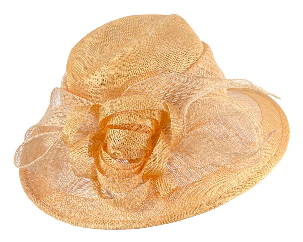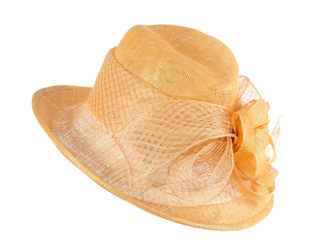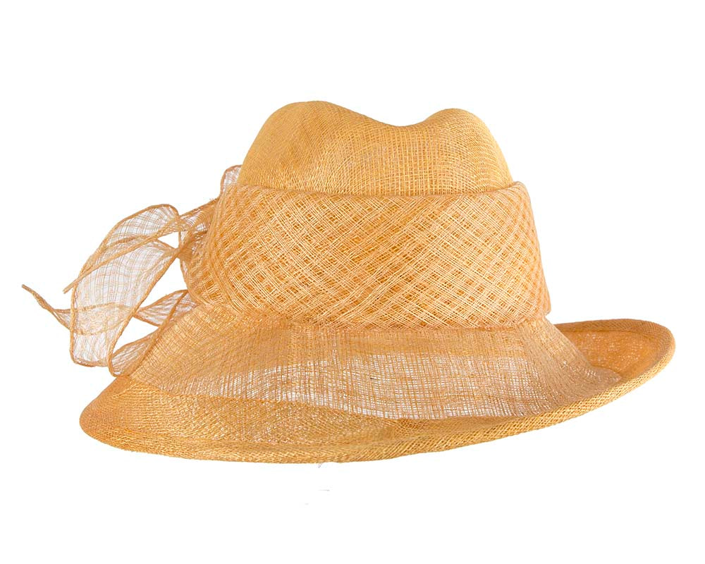 Gold sinamay hat by Cupids Millinery