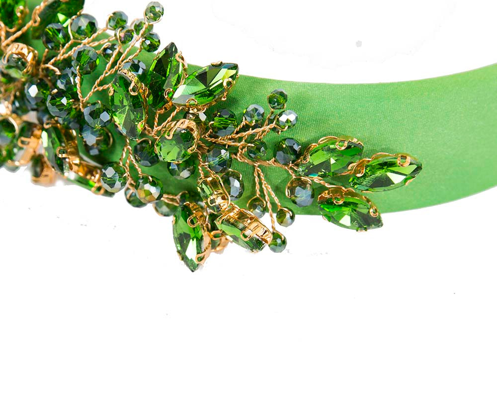 Green crystals fascinator headband by Cupids Millinery - Hats From OZ UK