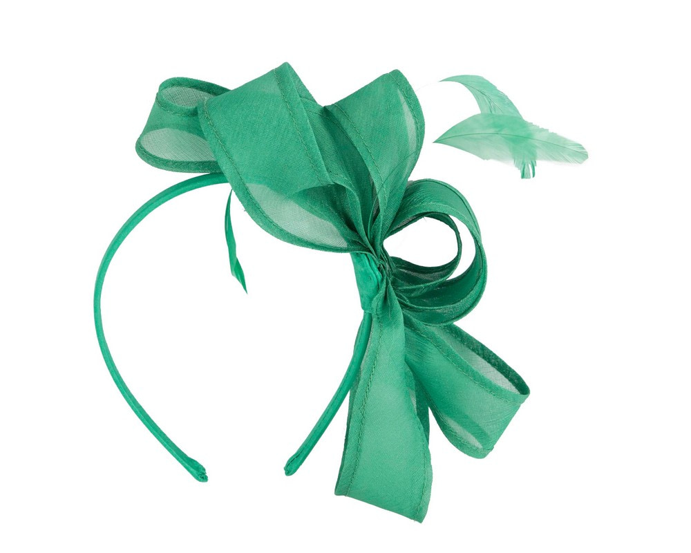 Elegant green organza fascinator with soft feathers. Great choice for your next racing outfit.