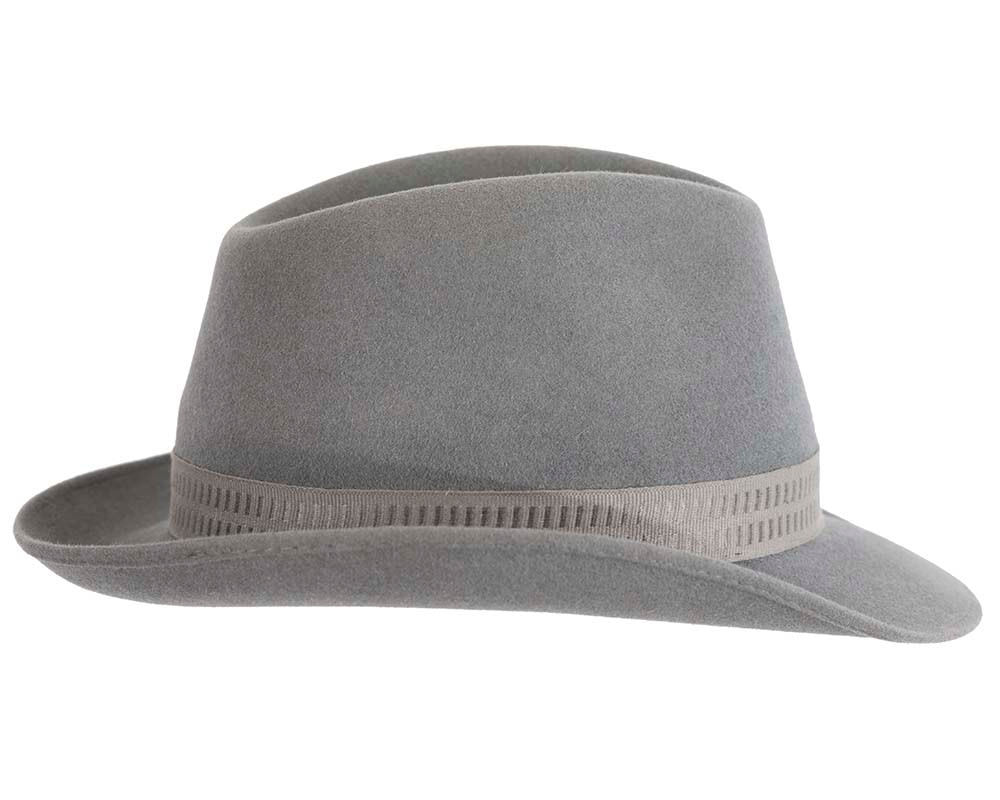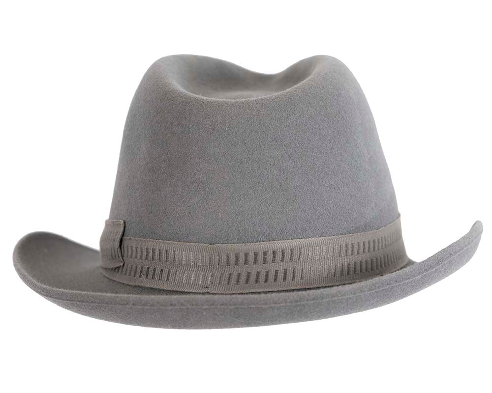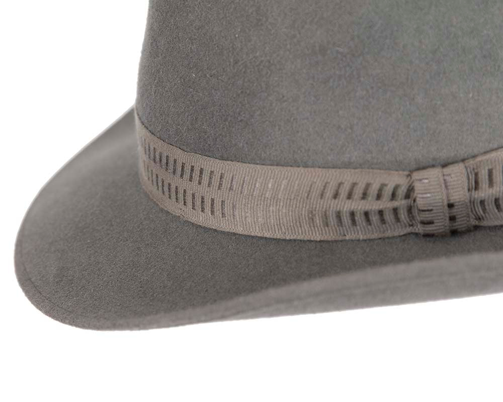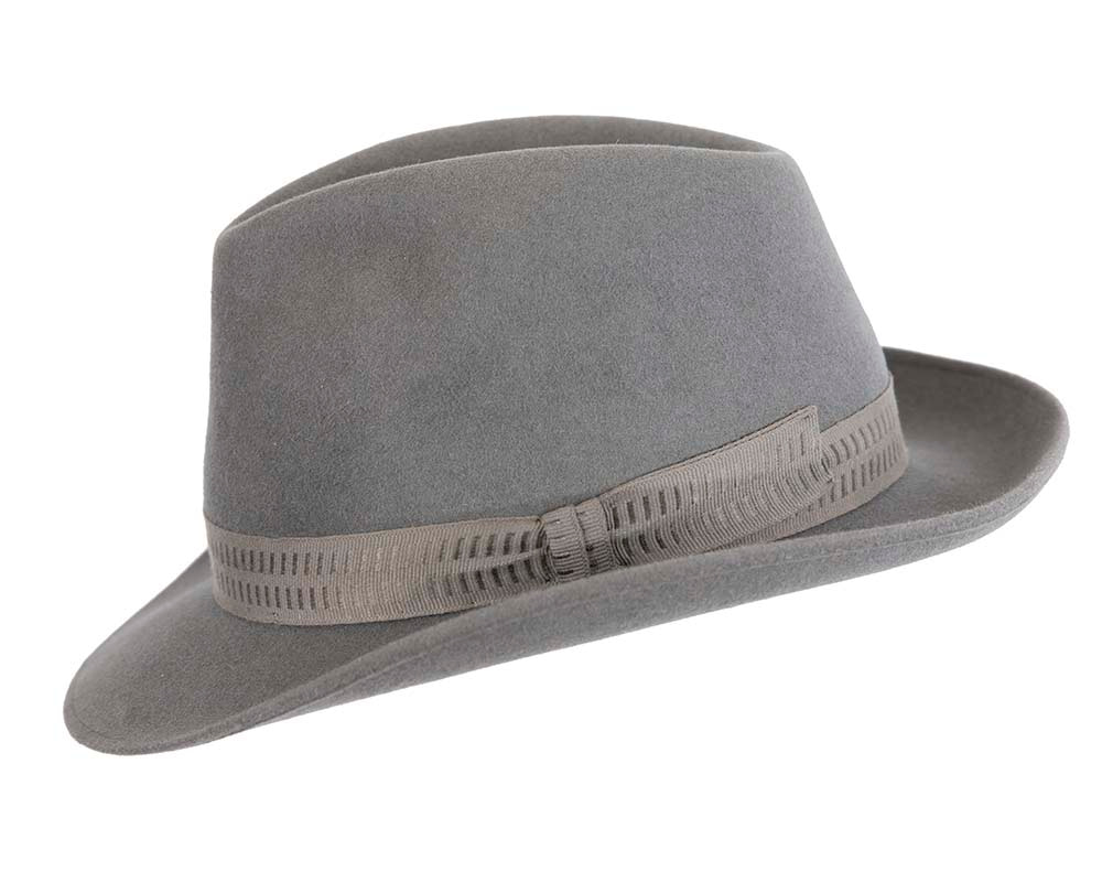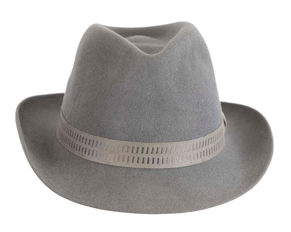 Made in Europe, this grey fedora hat is made from pure rabbit fur.