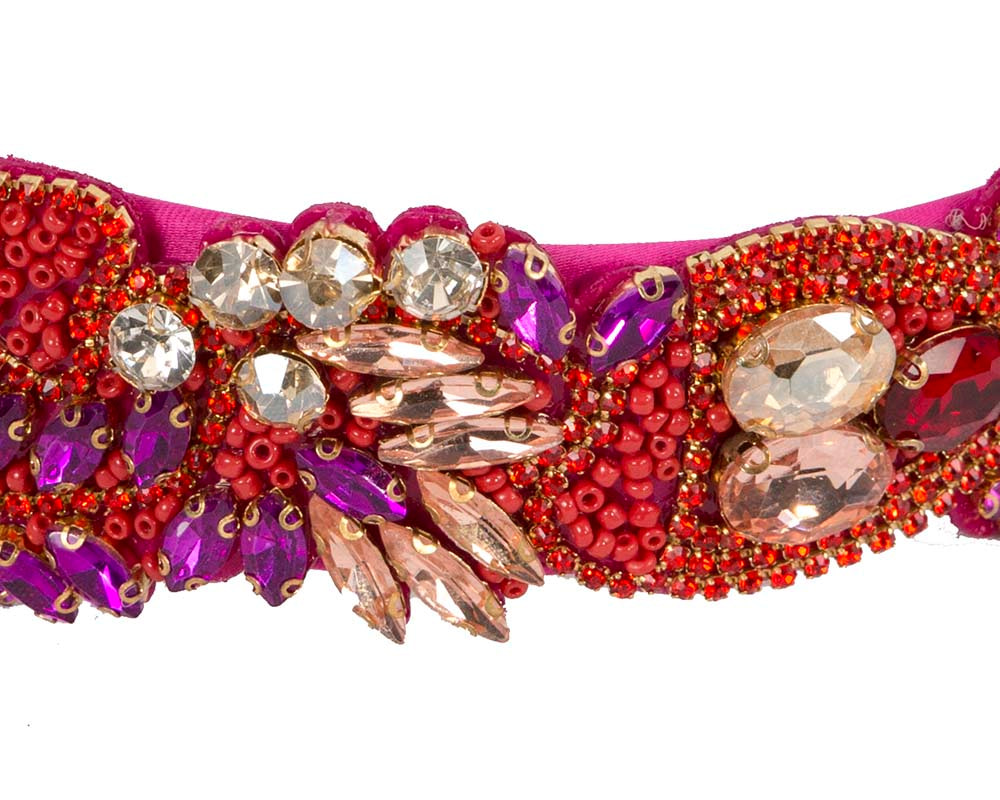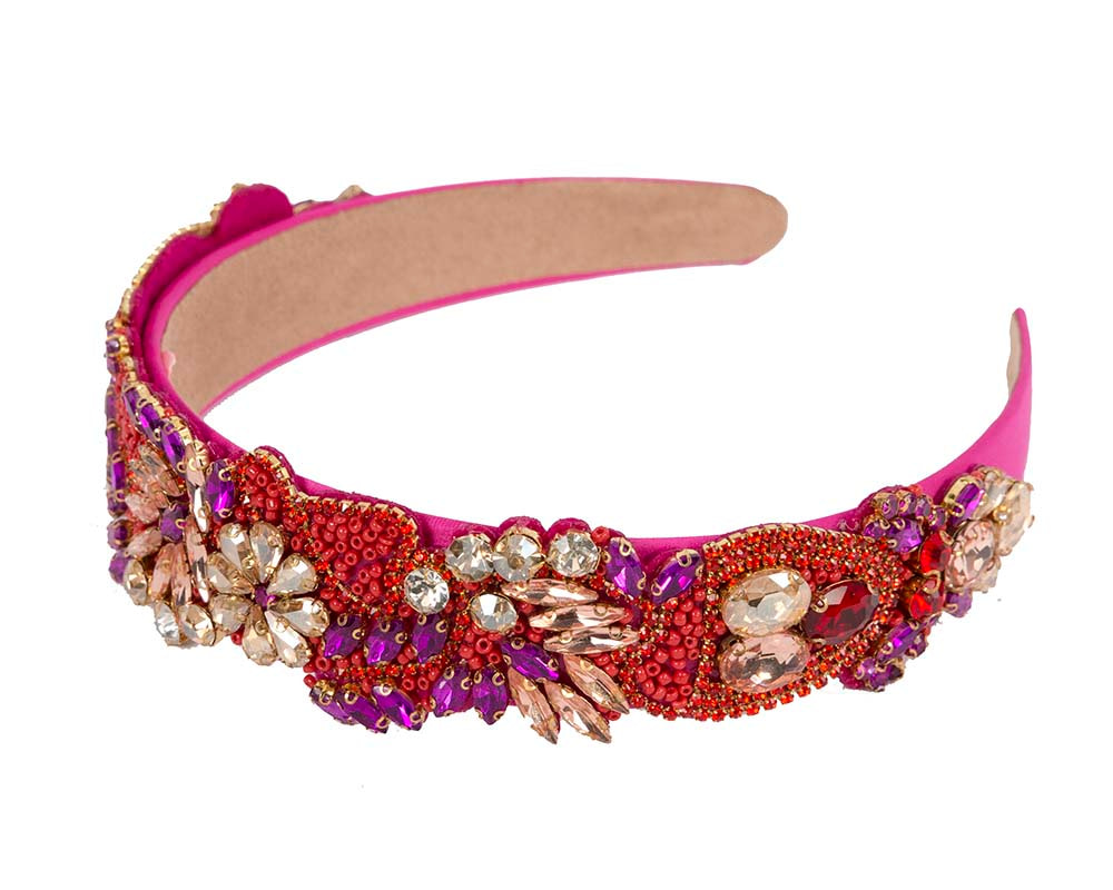 Headband fascinator covered in multi0colored jewels. Perfect racing accessory.