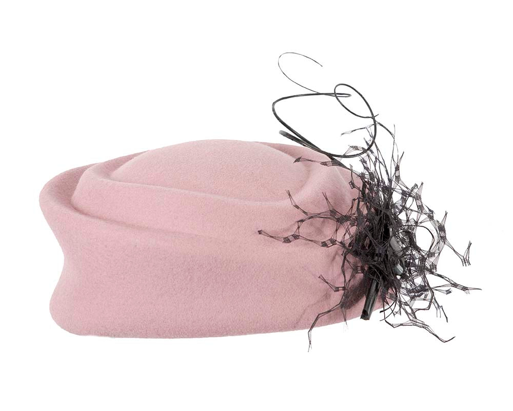 Large dusty pink winter felt pillbox hat for races - Hats From OZ UK