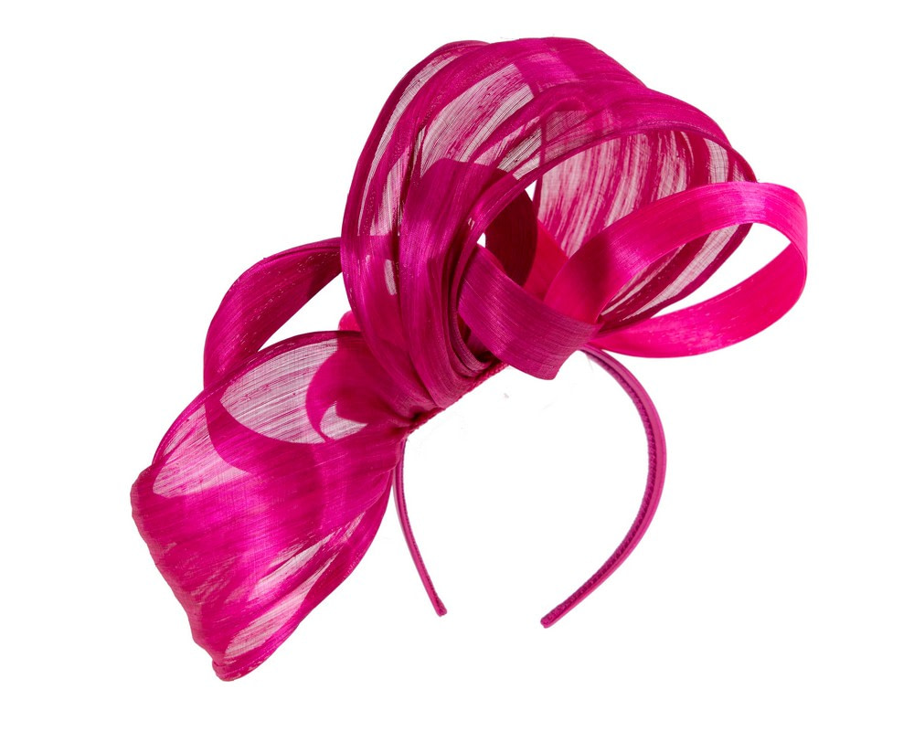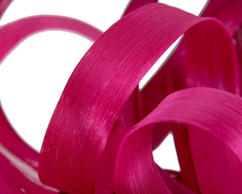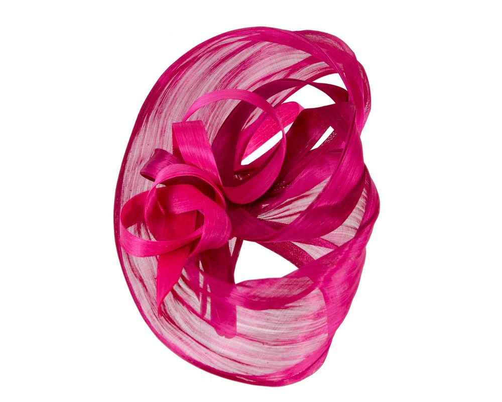 Large bespoke fascinator by Fillies Collection. Made to perfection from fuchsia silk abaca, this millinery masterpiece will be a jewel of your next racing outfit.