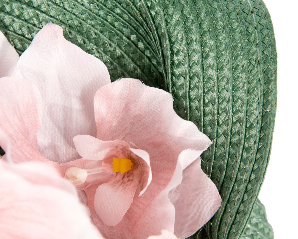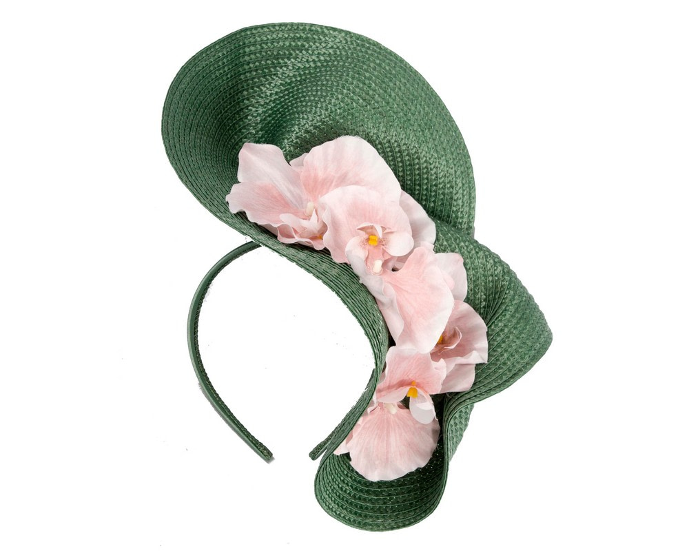 Large green fascinator with pink orchids by Fillies Collection - Hats From OZ UK