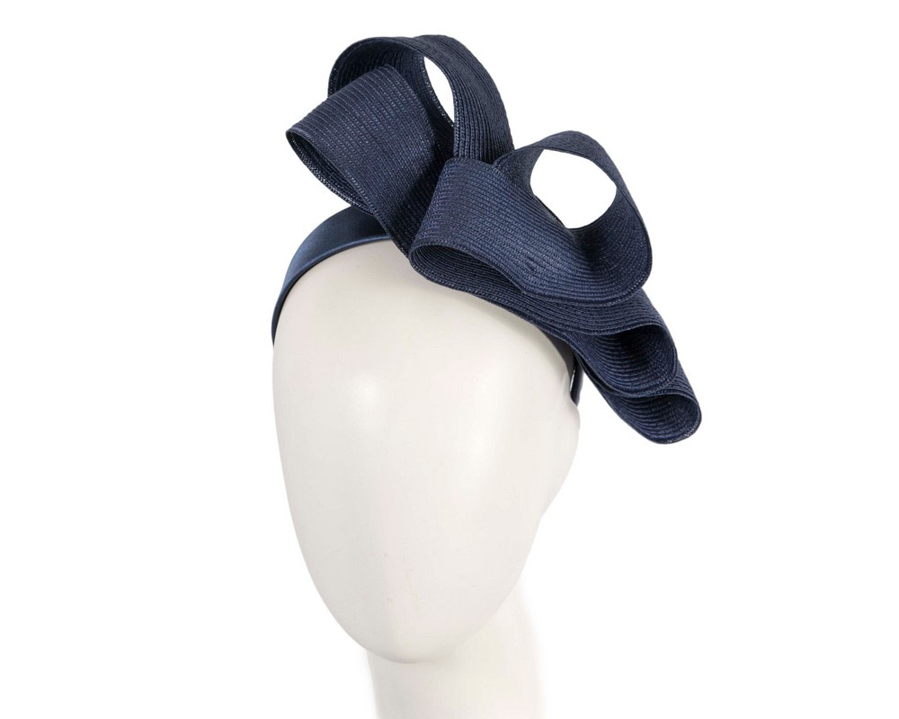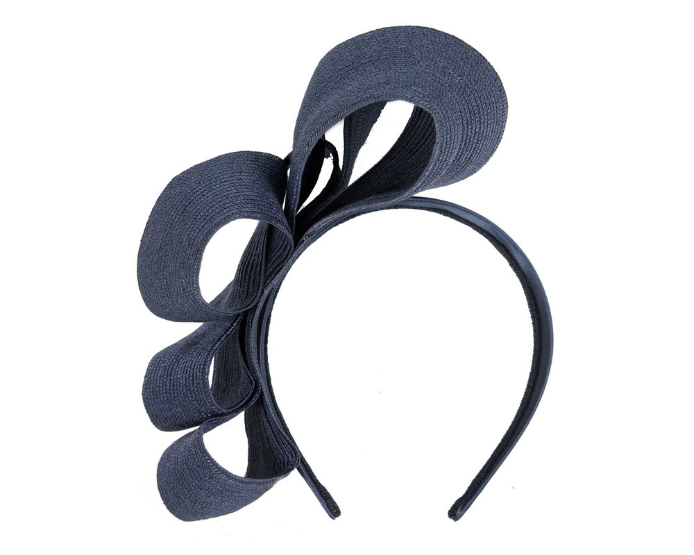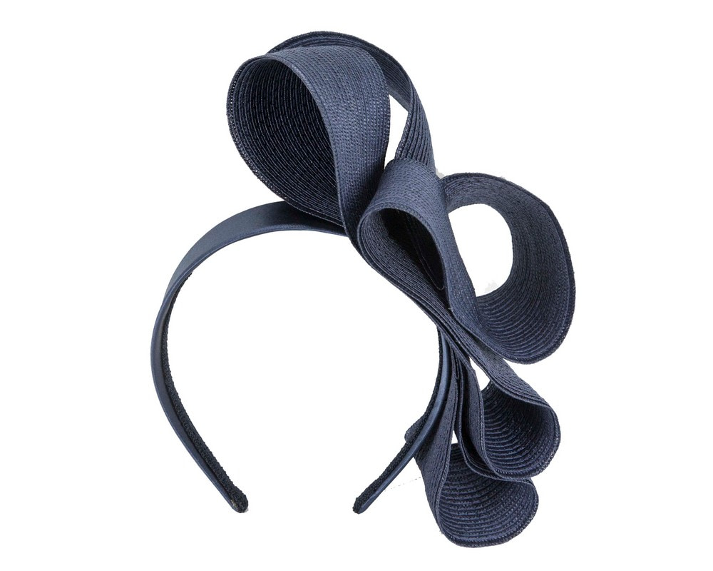 Navy loops fascinator from latest Max Alexander racing collection. Hand made from of PU braid and placed on the on the comfortable headband.