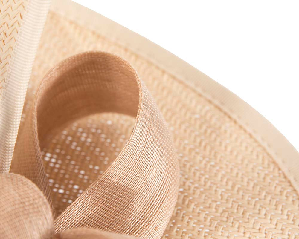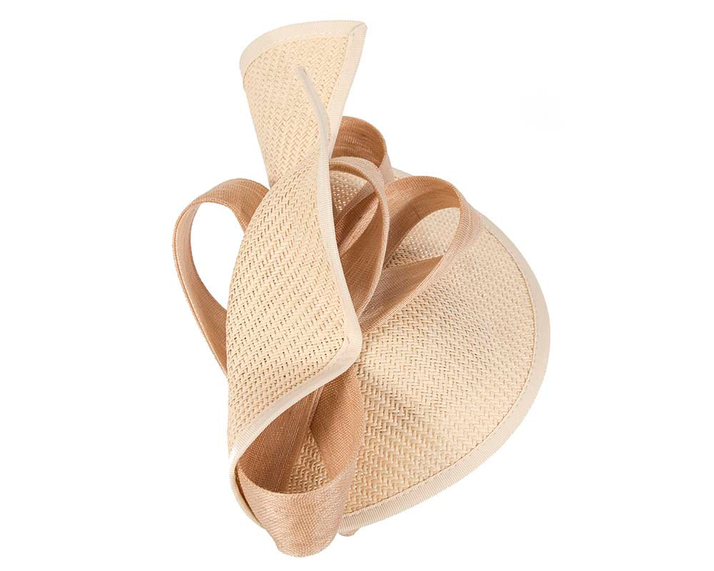 Large nude twisted plate decorated with silk abaca bow. Hand made in Melbourne by our skillful milliners, this headpiece will be a crown jewel of your spring racing outfit.