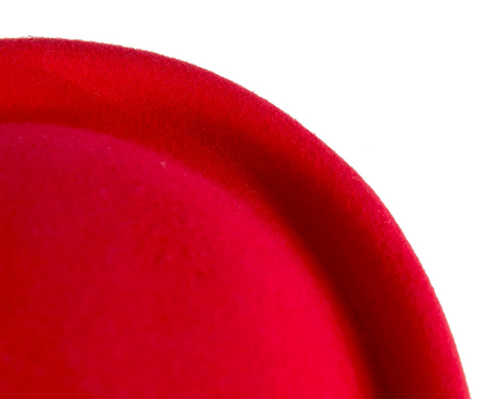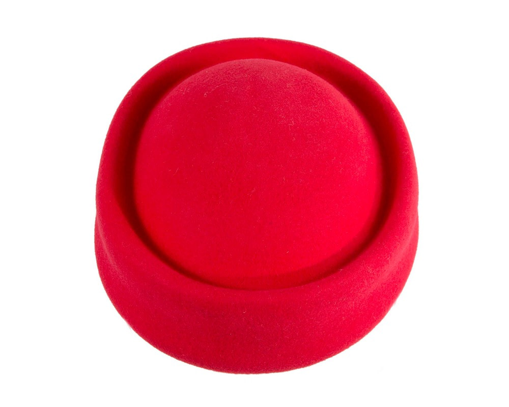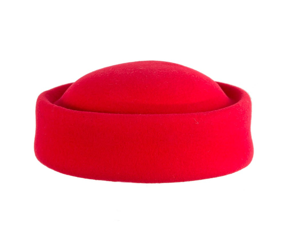 Large red felt pillbox hat. Classic pillbox made from pure wool felt. Addition of hair elastic for easy wear.