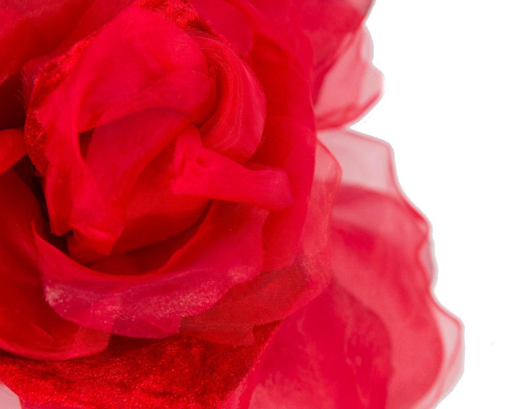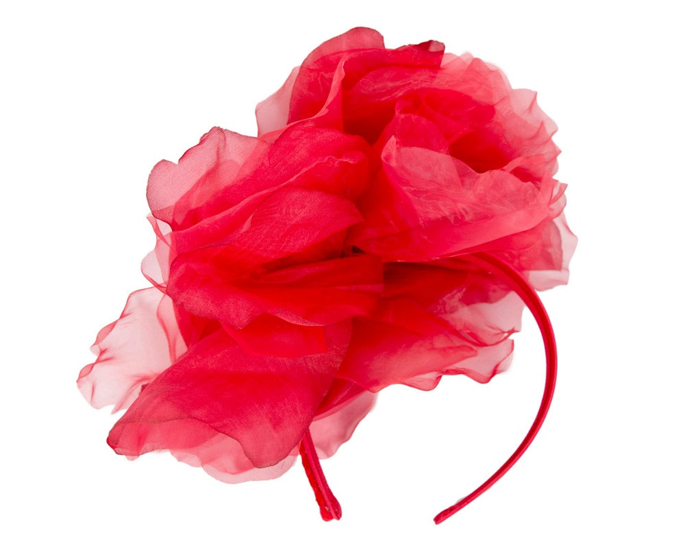Absolutely gorgeous red flower fascinator from Fillies Collection. Large soft flower placed on the comfortable headband to match your racing outfit.