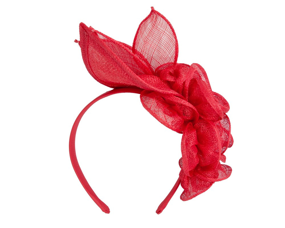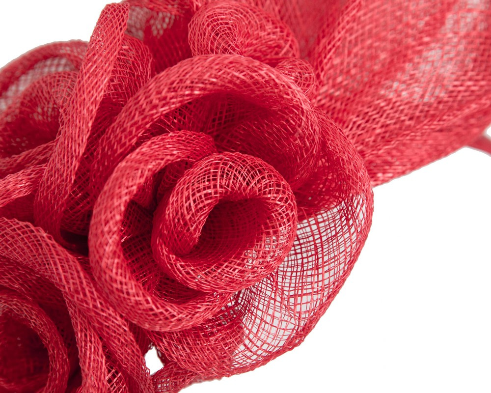 Gorgeous red flower arrangement hand made from fine sinamay and placed on the headband.