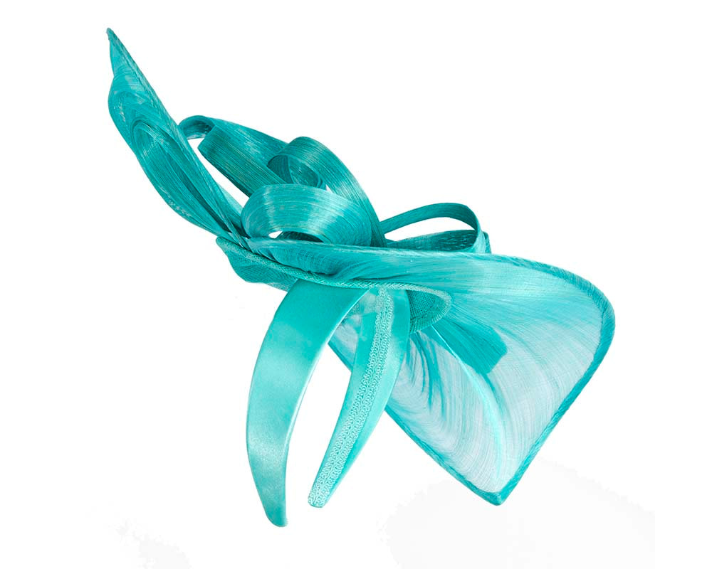 Beautiful creation from latest Fillies Collection. Large turquoise heart made from real silk abaca and placed on the headband for easy wear. Perfect choice for Melbourne Cup and spring racing carnivals.