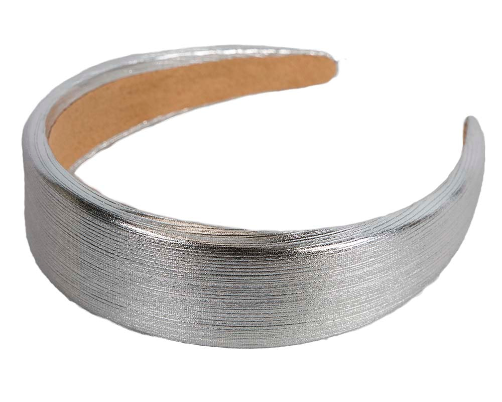 Silver fascinator headband. High quality leather-like covering. Great choice for racing outfits.