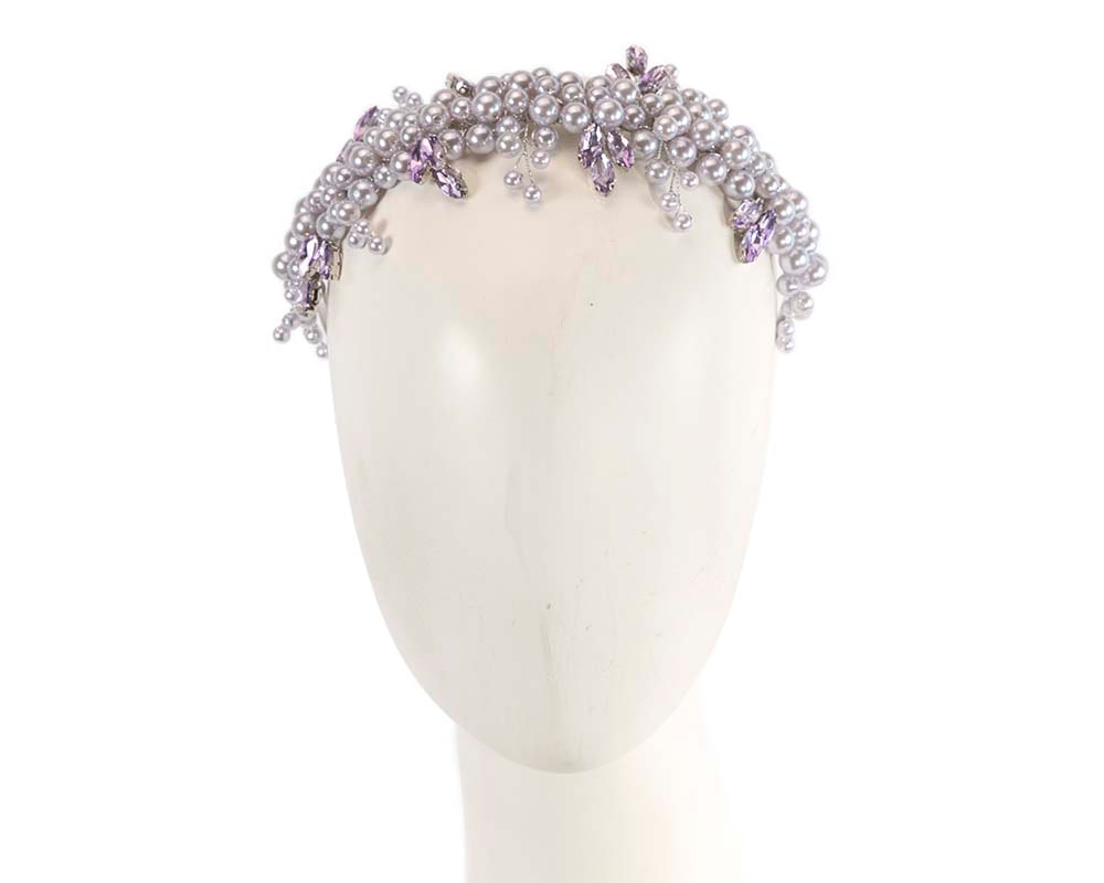 Lilac metal headband fascinator covered in pearls and crystals. Perfect racing accessory.
