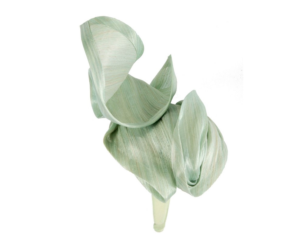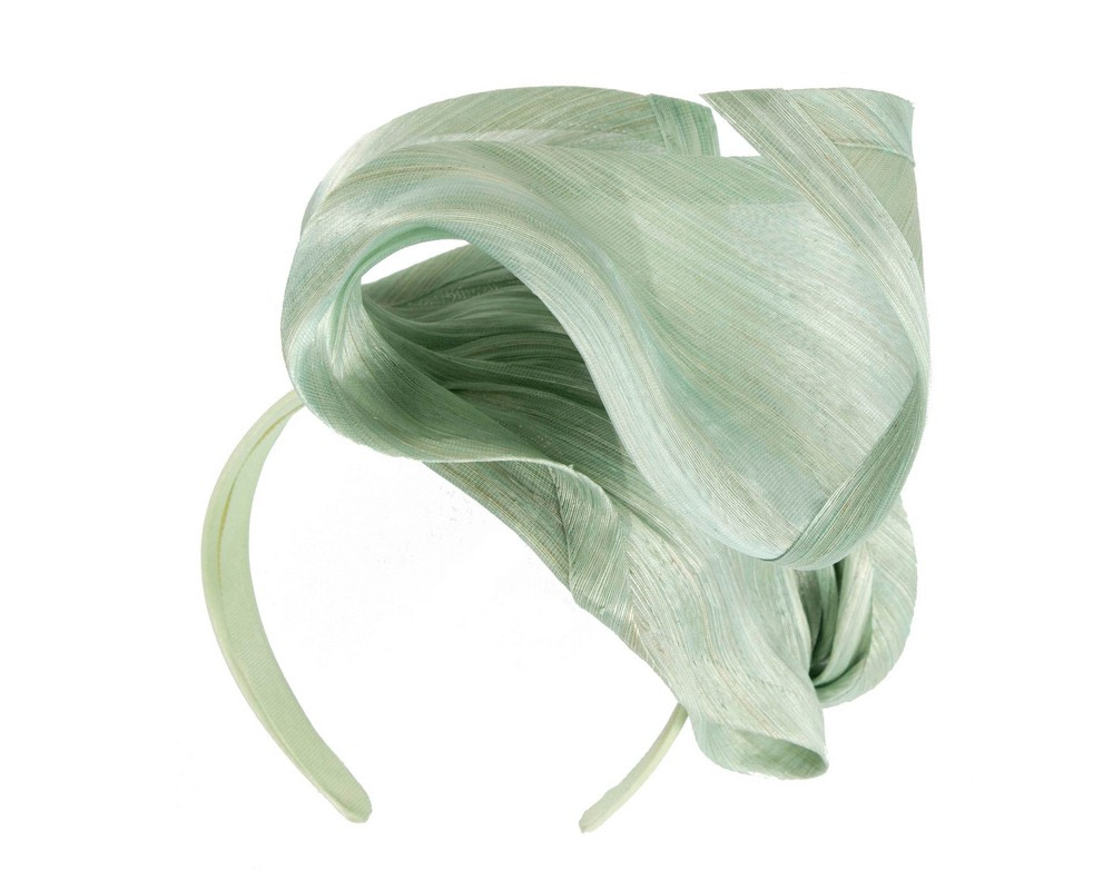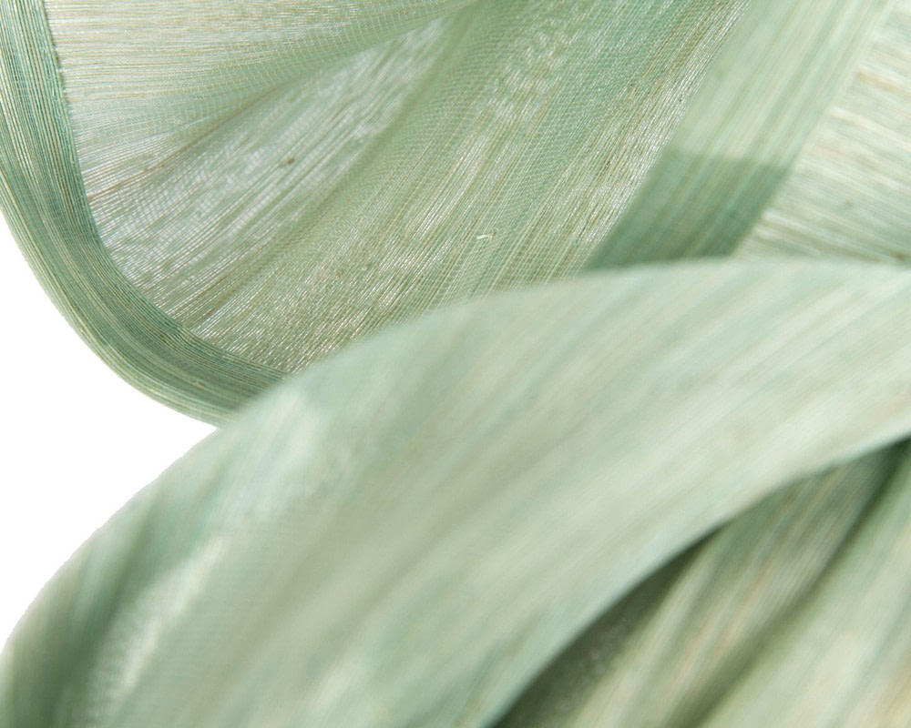 This elegant fashion fascinator hat is an ideal complement for any outfit. Wear it at Melbourne Cup, Ascot, Kentucky Derby or any other special occasion and it is guaranteed to turn heads! Hand made in Melbourne from twists of luxurious mint green silk abaca fabric, this fascinator hat is mounted on the band for better fit.